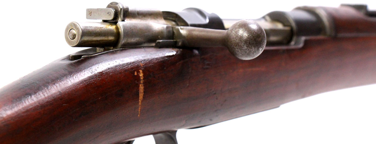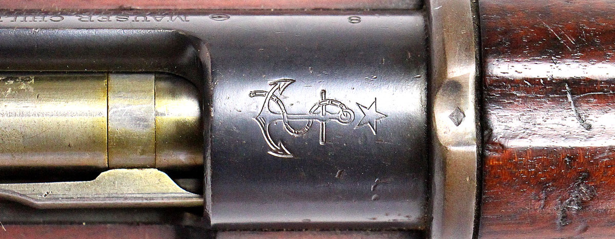 This is an antique Navy Contract Chilean 1895 Mauser chambered in 7mm Mauser. It features a 29-inch barrel, 5-round capacity, folding ladder rear sight, claw extractor, cleaning rod, and bayonet lug. Overall, this Mauser is in good condition with normal age-related wear throughout the barrel, receiver, and stock. The stock has a crack toward the toe. Bore condition is fair with worn rifling toward the muzzle. A Chilean Navy anchor crest is featured on the receiver. This rifle has no import marks and the serial numbers match. The receiver is marked Loewe Berlin, indicating that this rifle was manufactured between 1895-1896 as Loewe became a part of DWM in 1897. This would be a good choice for military surplus collectors. Buy online today!