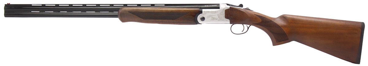 This is a used ATI Cusader Field over/under shotgun chambered in 28 gauge. It features 26-inch barrels, 2.75-inch chambers, 14-inch length of pull, manual safety, screw-in modified choke, and screw-in improved cylinder choke. Overall, this shotgun is in good condition with some handling wear on the stock. This would be a good choice for upland game hunting. Buy online today!