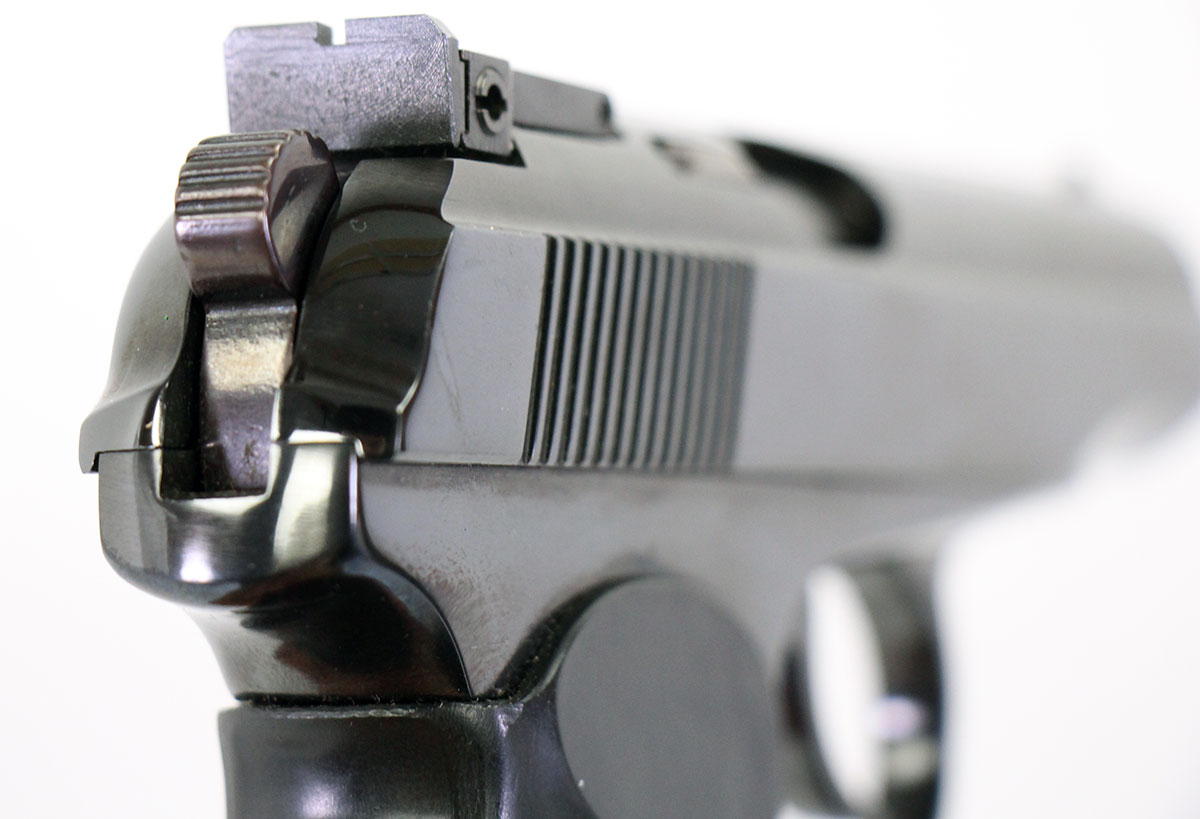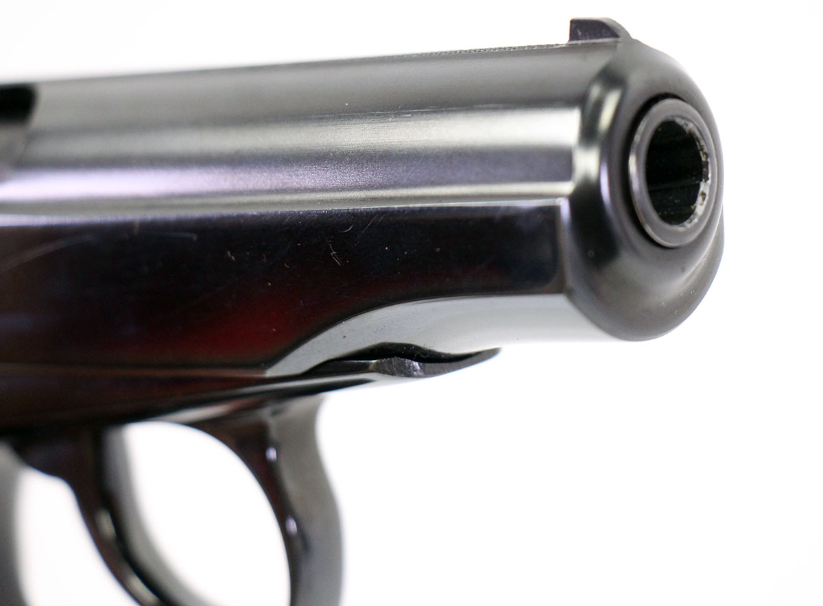 This is a used Baikal IJ-70 Makarov pistol chambered in 9x18 Makarov. It features a 3.75-inch barrel, 8-round magazine, manual safety/decocker, adjustable rear sight, blued finish, and heel magazine release. Overall, this Makarov is in good condition with normal use wear on the barrel, slide, and frame. This gun has KBI import marks on the left side of the slide. This would be a good choice for recreational target shooting. Buy online today!