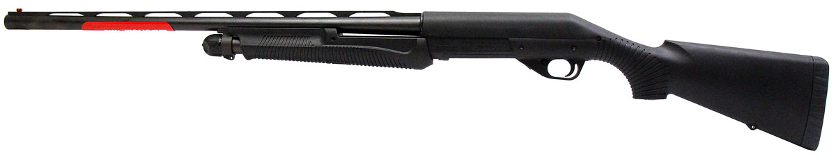 This is a used Benelli Nova Field shotgun chambered in 12 gauge. It features a 26-inch barrel, 3.5-inch chamber, 14.25-inch length of pull, cross-bolt safety, screw-in improved cylinder choke, and fiber optic bead sight. Overall, this Benelli is in good condition with some handling marks on the barrel and stock. This would be a good choice for hunting. Buy online today!