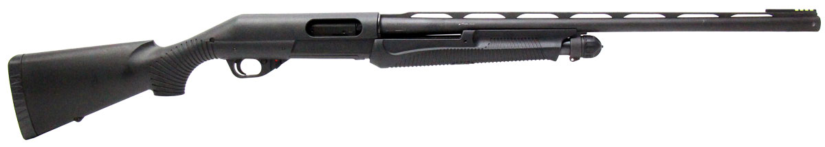 This is a used Benelli Nova Field shotgun chambered in 12 gauge. It features a 26-inch barrel, 3.5-inch chamber, 14.25-inch length of pull, cross-bolt safety, screw-in improved cylinder choke, and fiber optic bead sight. Overall, this Benelli is in good condition with some handling marks on the barrel and stock. This would be a good choice for hunting. Buy online today!