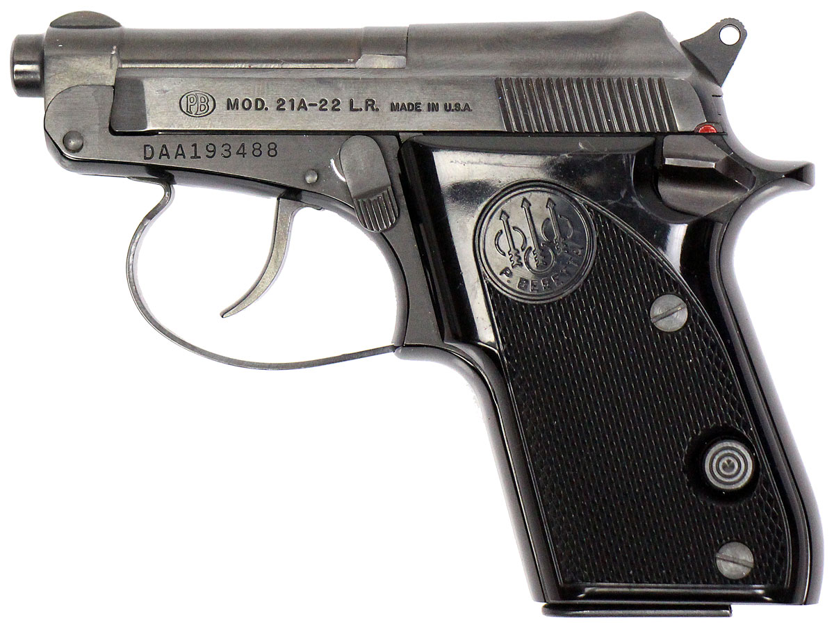 This is a used Beretta 21A Bobcat pistol chambered in 22 Long Rifle. It features a 2.4-inch tip-up barrel, 7-round magazine, thumb safety, polymer grips, and heel magazine release. Includes factory box and instruction manual. Overall, this Beretta is in good condition with some wear on the frame and slide. This would be a good choice for concealed carry. Buy online today!