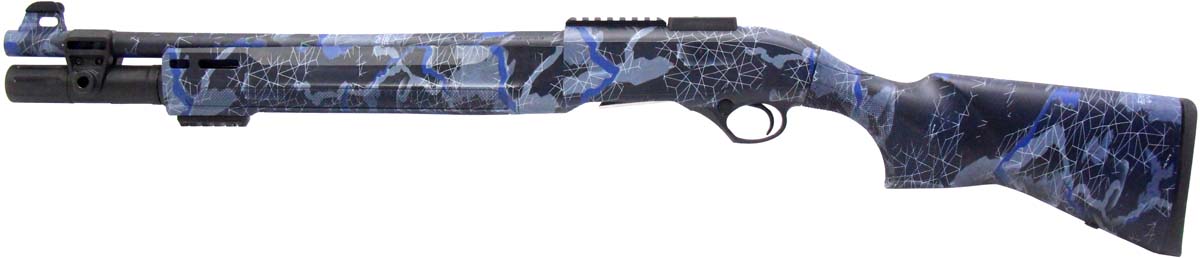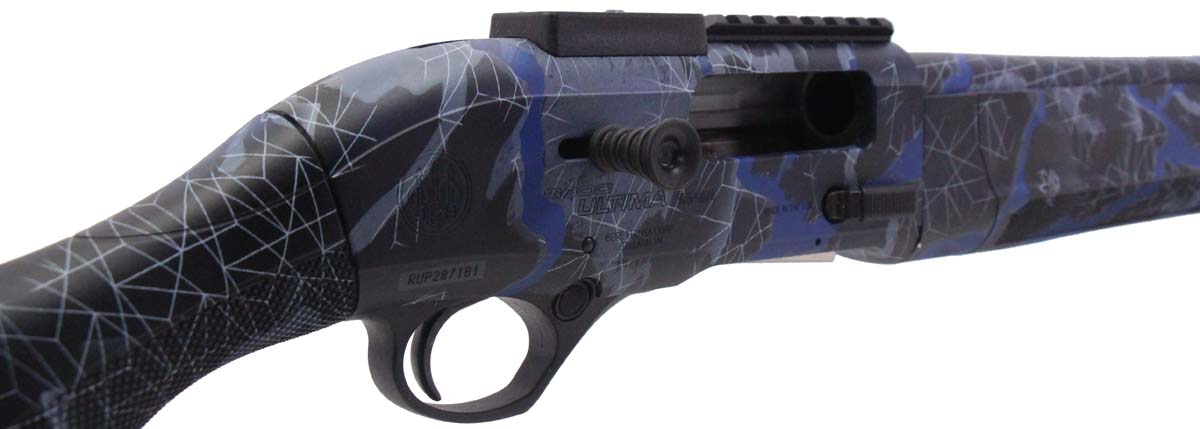This is a used Beretta A300 Ultima Patrol shotgun chambered in 12 gauge. It features a 19-inch barrel, 3-inch chamber, wing protected front sight, picatinny optic rail, cross-bolt safety, Realtree Trace Blue camo finish, and screw-in improved cylinder bore choke. Includes factory box and manual. Overall, this Beretta is in good condition with some handling wear on the stock and barrel. The rear sight is missing. This would be a good choice for home defense. Buy online today!