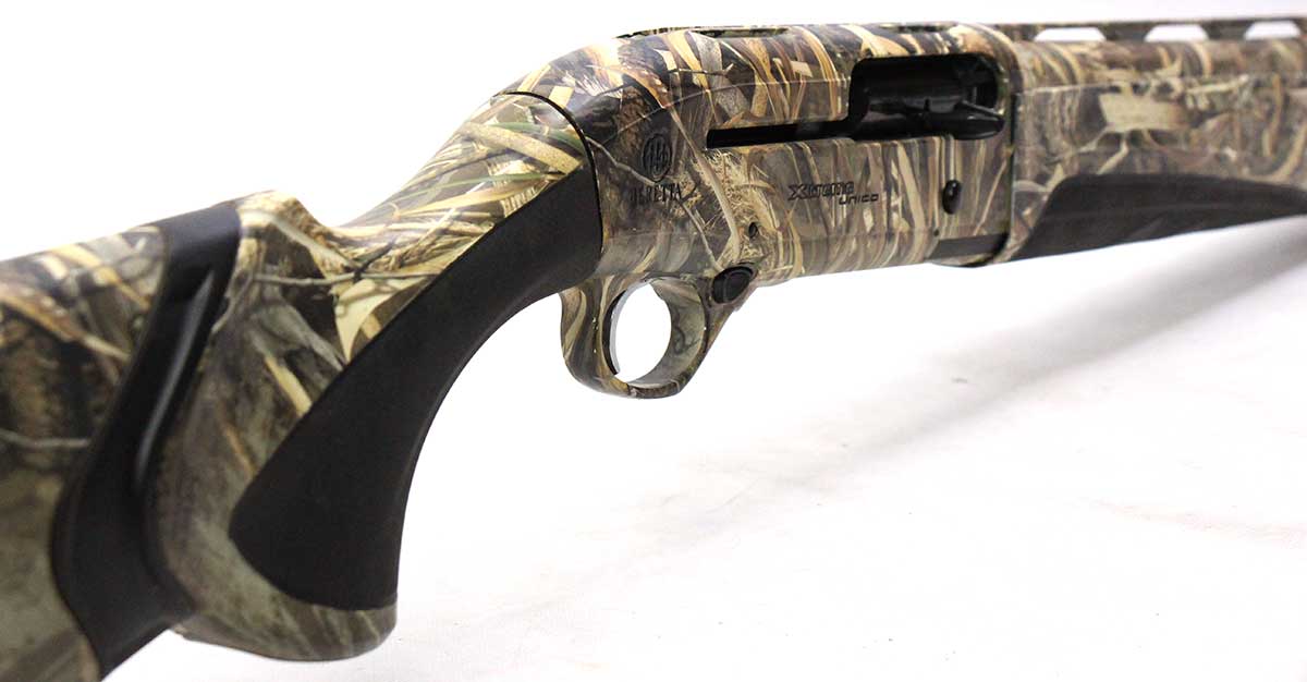 This is a used Beretta A400 Xtreme Unico shotgun chambered in 12 gauge. It features a 26-inch vent rib barrel, 3.5-inch chamber, 14.75-inch length of pull, cross-bolt safety, screw-in chokes, fiber optic front bead sight, kick-off recoil reduction system, Real Tree Max-5 camo finish, and synthetic furniture. Includes factory case, extended skeet choke, cylinder choke, modified choke, full choke, and a bottle of Beretta oil. Overall, this shotgun is in good condition with some handling wear on the stock. This would be a good choice for turkey hunting. Buy online today!