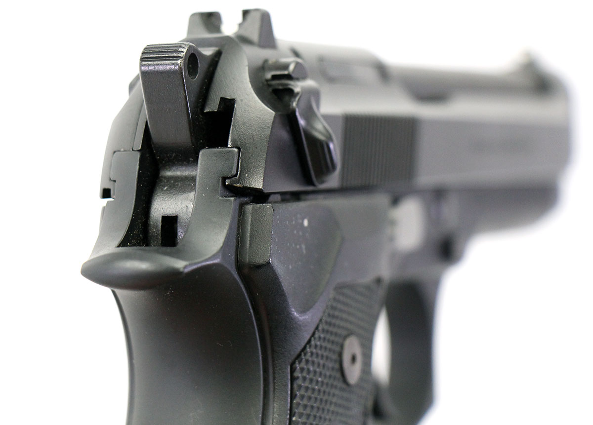 This is a used Beretta M9 pistol chambered in 9mm. It features a 4.9-inch barrel, 15-round magazine, fixed sights, and ambidextrous safety/decocker. Includes factory box, instruction manual, and two magazines. Overall, this Beretta is in good condition with normal wear on the slide and barrel. This would be a good choice for home defense. Buy online today!
