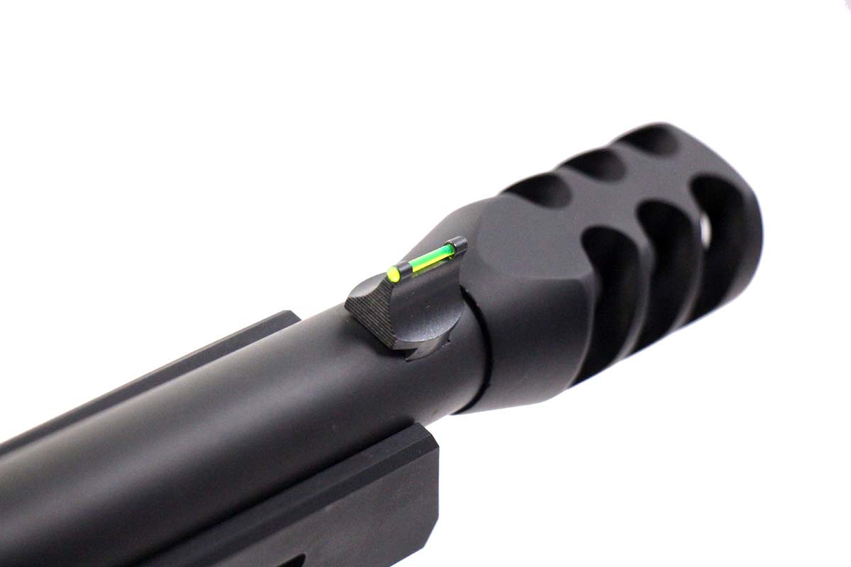 This is a used Big Horn Armory Model 89 Spike Driver rifle chambered in 500 Smith & Wesson Magnum. It features a 16-inch barrel, 7-round magazine tube, muzzle brake, side loading gate, Skinner rear peep sight, fiber optic front sight, laminate wood furniture, and black painted finish. Includes MTM rifle case. Overall, this rifle is in very good condition with minimal wear. Bore condition is excellent with crisp rifling and a bright chamber. This would be a great choice for hunting big game. Buy online today!