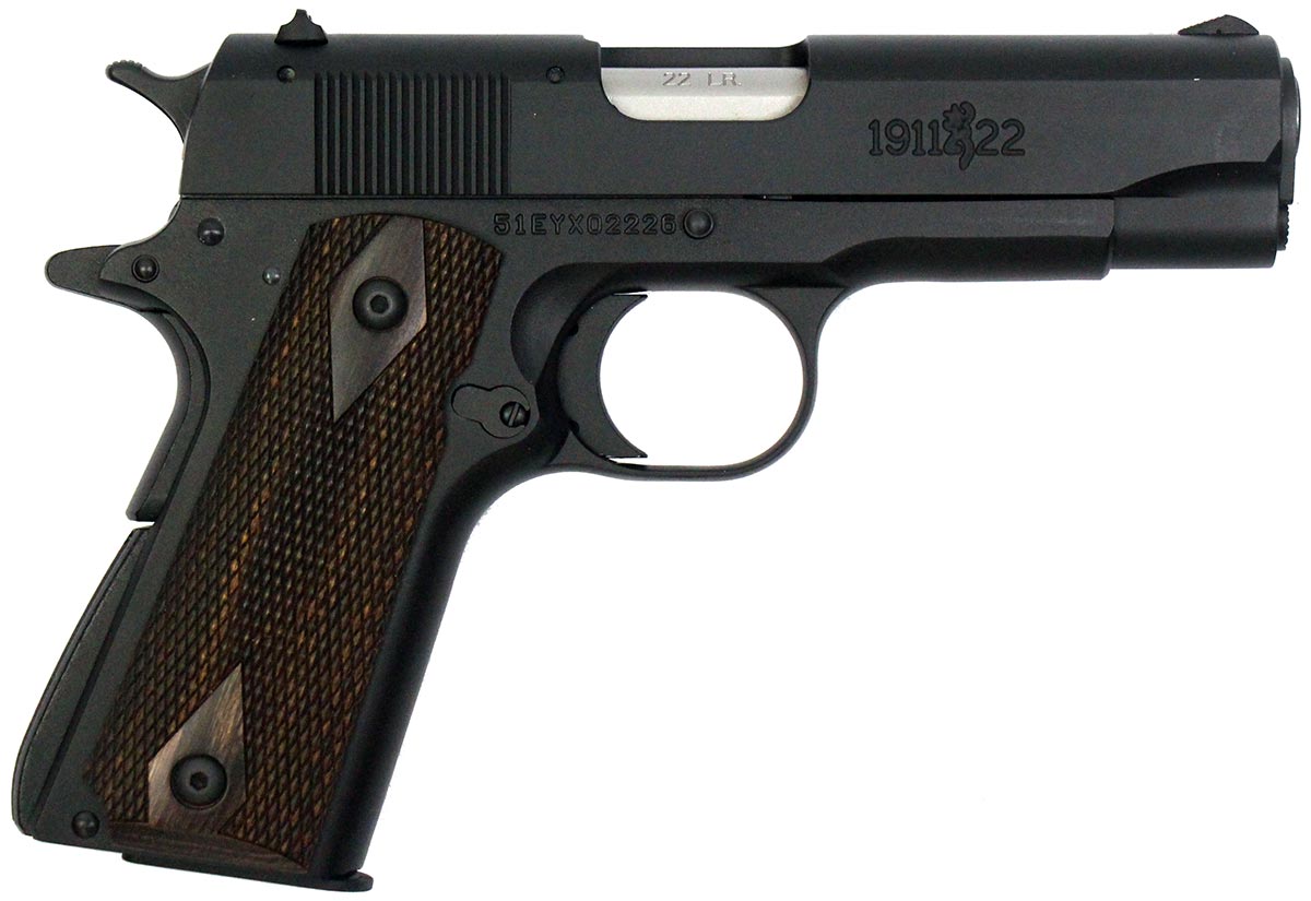 This is a used Browning 1911-22 pistol chambered in 22 Long Rifle. It features a 3.7-inch barrel, 10-round magazine, fixed sights, grip safety, thumb safety, magazine disconnect safety, and checkered wood grips. Includes factory box and manual. Overall, this pistol is in very good condition with minimal wear. This would be a great choice for target shooting. Buy online today!