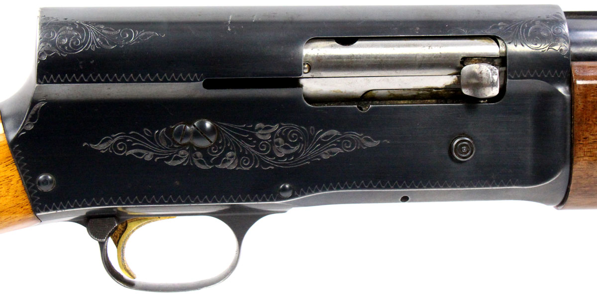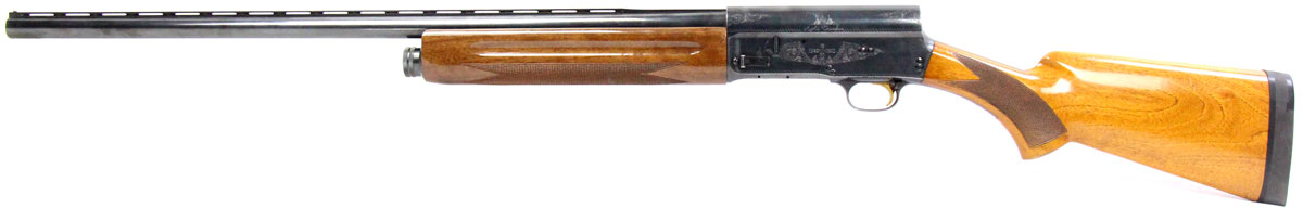 This is a used Browning A-5 Light Twelve shotgun chambered in 12 gauge. It features a 28-inch Japanese replacement barrel with permanently affixed Briley thin wall cylinder bore choke, 14.5-inch length of pull, 2.75-inch chamber, cross-bolt safety, and Belgian receiver. Overall, this shotgun is in good condition with some handling wear on the receiver and stock. The stock appears to be a replacement. Based on Browning's serial date codes, this shotgun was manufactured in 1967. This would be a good choice for skeet shooting. Buy online today!