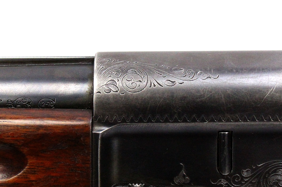 This is a used Belgian Browning A5 Light Twelve shotgun chambered in 12 gauge. It features a 26-inch vent rib barrel, 2.75-inch chamber, 14.25-inch length of pull, cross-bolt safety, and fixed modified choke. Overall, this Browning is in good condition with normal age-related bluing wear throughout the barrel and receiver. The stock has handling wear. Based on Browning's serial lookup, this shotgun was manufactured in 1957. This would be good choice for hunting. Buy online today!