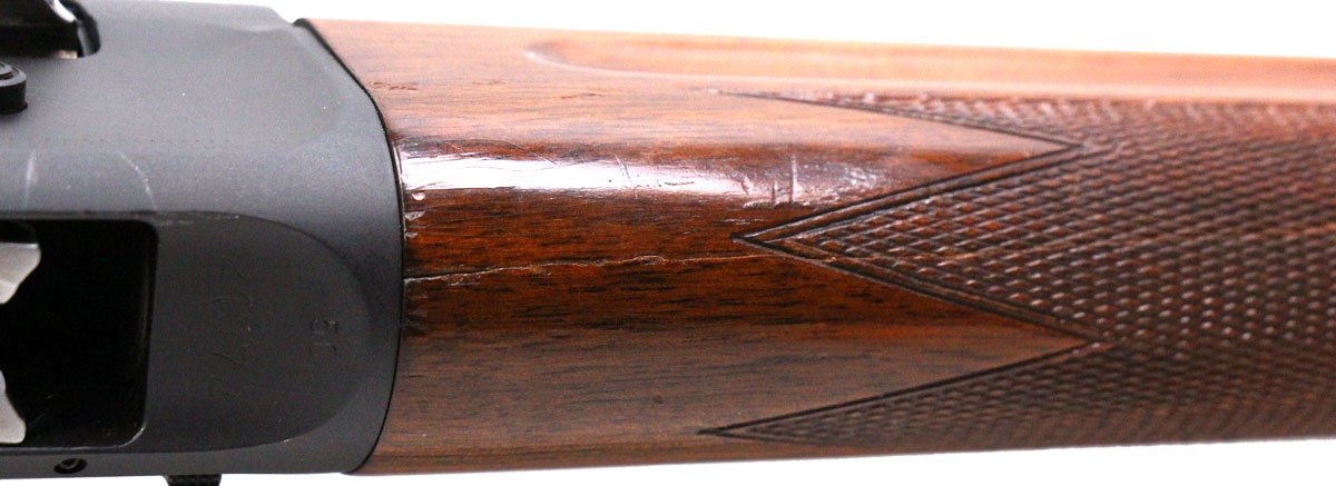 This is a used Browning A5 Light Twelve shotgun chambered in 12 gauge. It features a 26-inch vent rib barrel, 2.75-inch chamber, 14.5-inch length of pull, cross-bolt safety, Cerakote finish, and fixed improved cylinder choke. Overall, this Browning is in good condition with handling wear on the receiver and stock. The forend has a crack near the receiver. Based on Browning's serial lookup, this shotgun was manufactured in 1965. The barrel is marked "Made in Belgium" on the left side. This would be good choice for hunting. Buy online today!