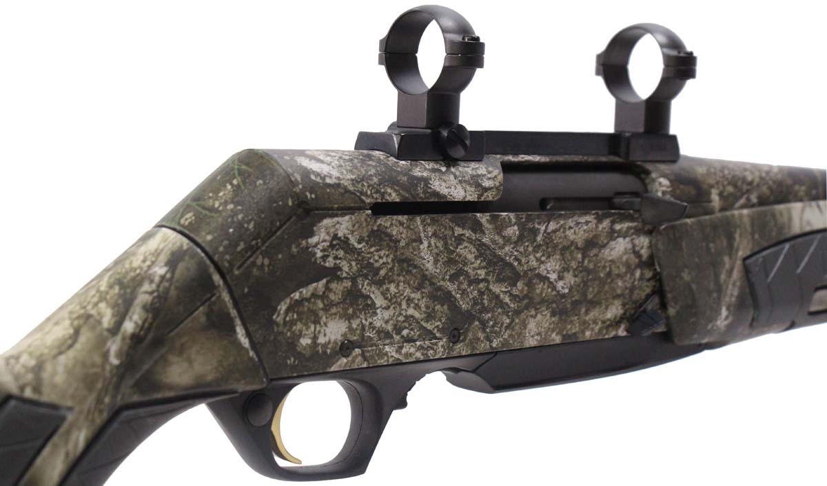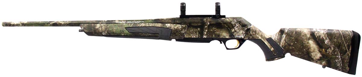 This is a used Browning BAR Shorttrac rifle chambered in 308 Winchester. It features a 22-inch barrel, 4-round magazine, 1-inch scope rings, cross-bolt safety, and Real Tree APX camo finish. Overall, this rifle is in good condition with some handling wear on the stock. Bore condition is good with crisp rifling. Based on Browning's serial lookup, this rifle was manufactured in 2011. The barrel is marked "Made in Belgium Assembled in Portugal". This would be a good choice for hunting. Buy online today!