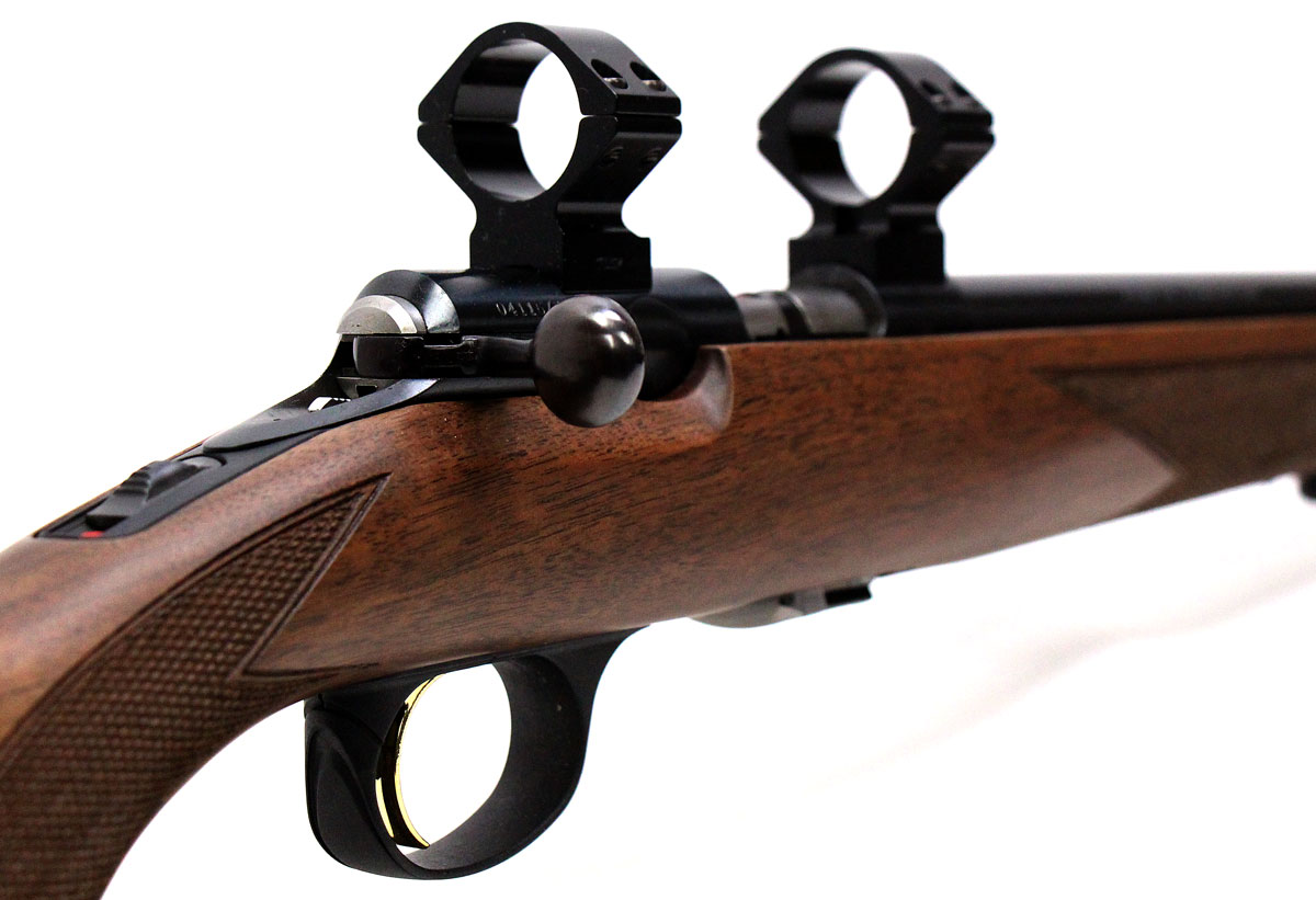 This is a used Browning T-Bolt Sporter rifle chambered in 22 Long Rifle. It features a 22-inch barrel, 10-round magazine, 1-inch scope rings, blued finish, walnut stock, and straight-pull bolt action. Overall, this rifle is in good condition with some handling wear on the stock and finish wear on the trigger. Bore condition is good with crisp rifling. Based on Browning's serial lookup, this rifle was manufactured in 2015. This would be a good choice for small game hunting. Buy online today!