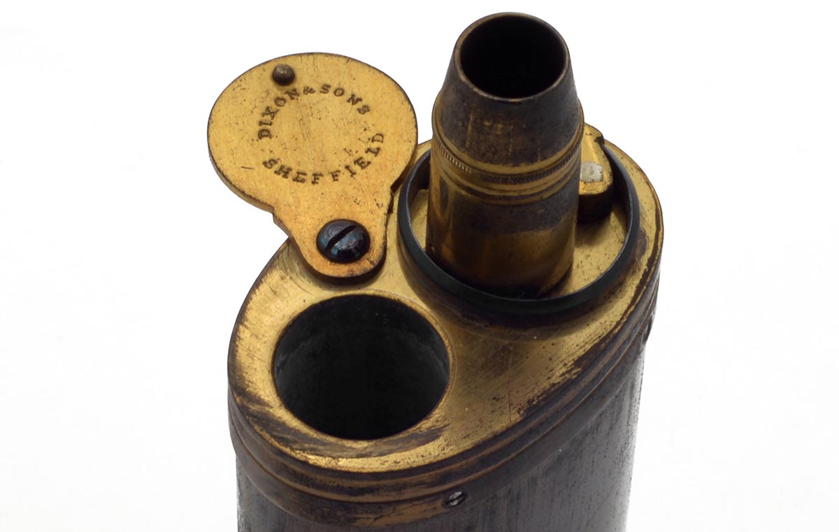 This is a cased pair of antique Belgian engraved Muff/Boot percussion pistols. These pistols feature 2-1/8-inch screw-off rifled barrels, which appear to be .44 caliber with damascus pattern on the outside. The barrels are marked with Liege Belgium "E/LG*" oval proofs and are numbered "9" on both. The frames are floral engraved with folding triggers that extend when the hammer is pulled back. The grips are fluted ebony. These pistols probably date to around 1850 and come in a fitted wood case with violet felt lining and storage compartments. Included in the case is a bullet mold and James Dixon & Sons 3-way powder flask, which also dates to around the same time period. Overall condition of the pistols is good, the bores still have clear rifling and shine, but there is some pitting. The nipple on both guns shows some rust and there is also rust on the frame chamber ports when the barrels are removed. Mechanically, the pistols seem to be in working condition and would probably still shoot. Buy online today!