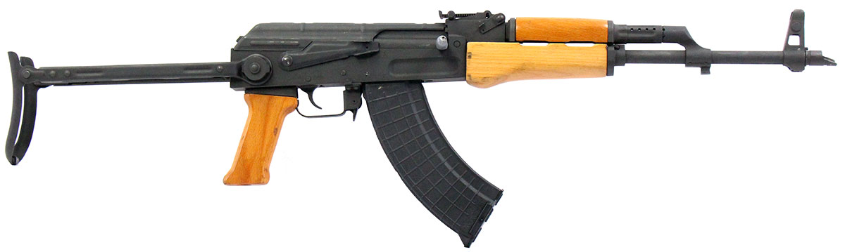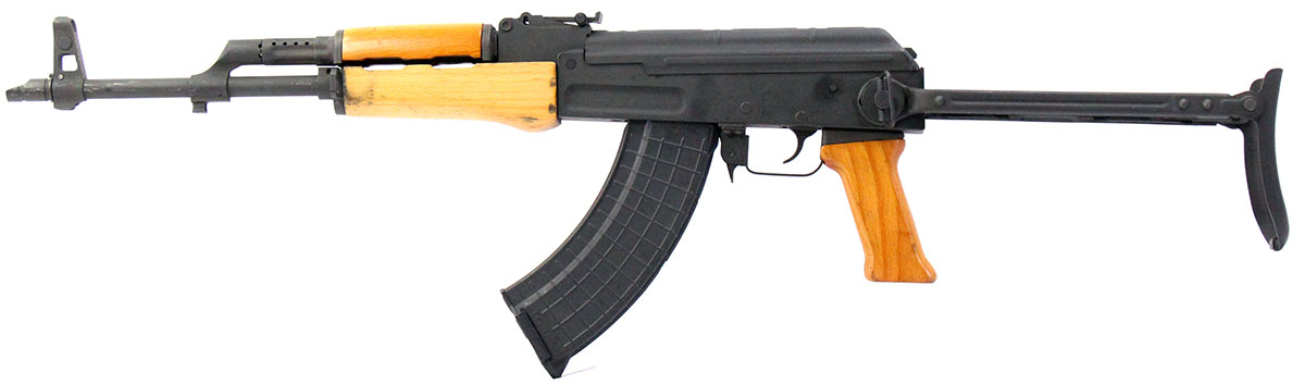 This is a used Century Arms AK-63D AK-47 rifle chambered in 7.62x39. It features a 16.5-inch barrel with slant muzzle brake, 30-round magazine, tangent rear sight, wing protected front sight, under folding stock, and milled receiver. Overall, this rifle is in good condition with some handling wear on the receiver. This would be a good choice for home defense. Buy online today!