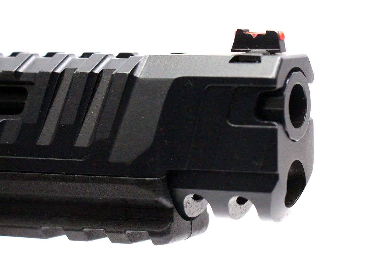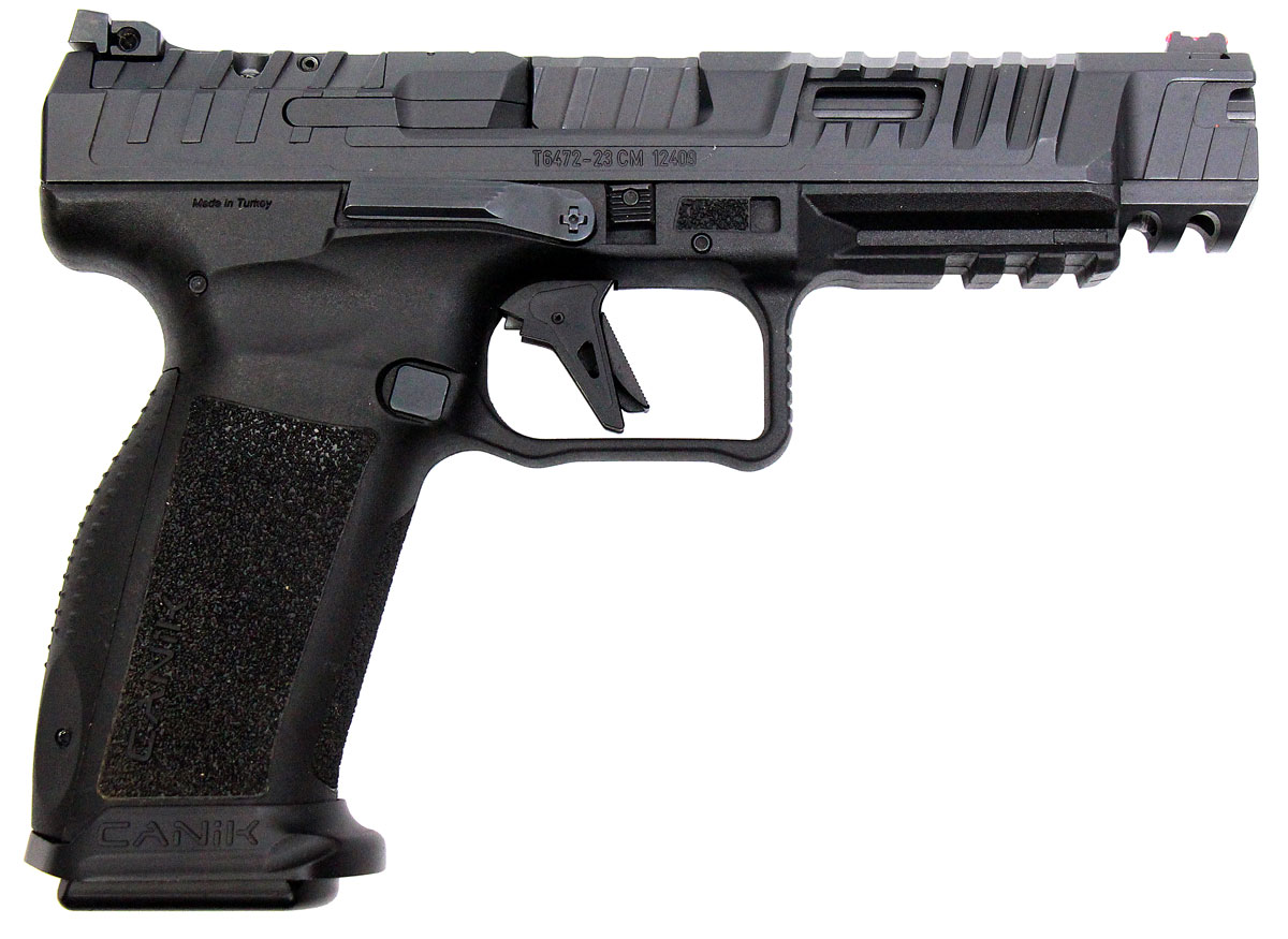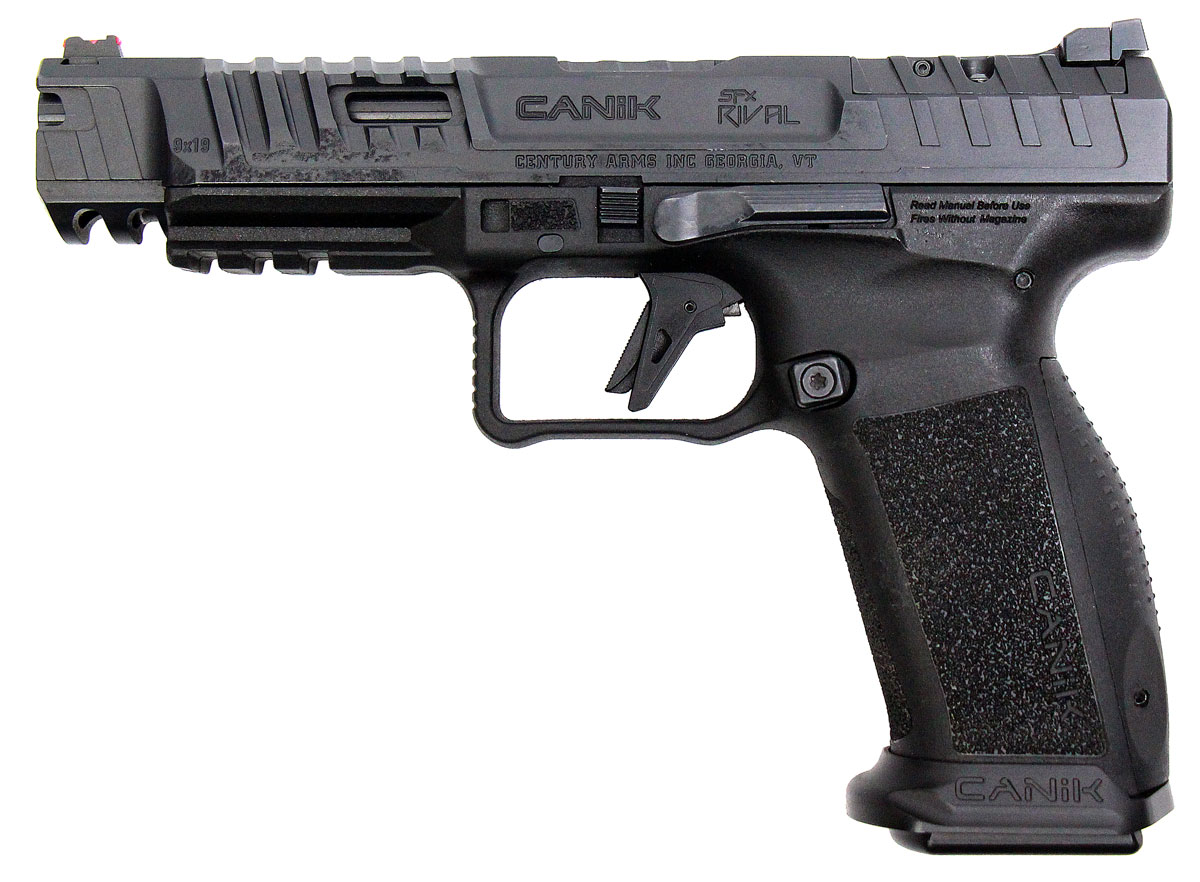 This is a used Century International Arms Canik SFx Rival pistol chambered in 9mm. It features a 5-inch barrel, 18-round magazines, optics ready slide, fiber optic front sight, adjustable rear sight, and accessory rail. Includes factory box, instruction manual, cleaning brush, optic adaptor plate set, backstrap set, two magazines, and magazine loading tool. Overall, this Canik is in good condition with normal use wear on the slide and barrel. This would be a good choice for target shooting. Buy online today!