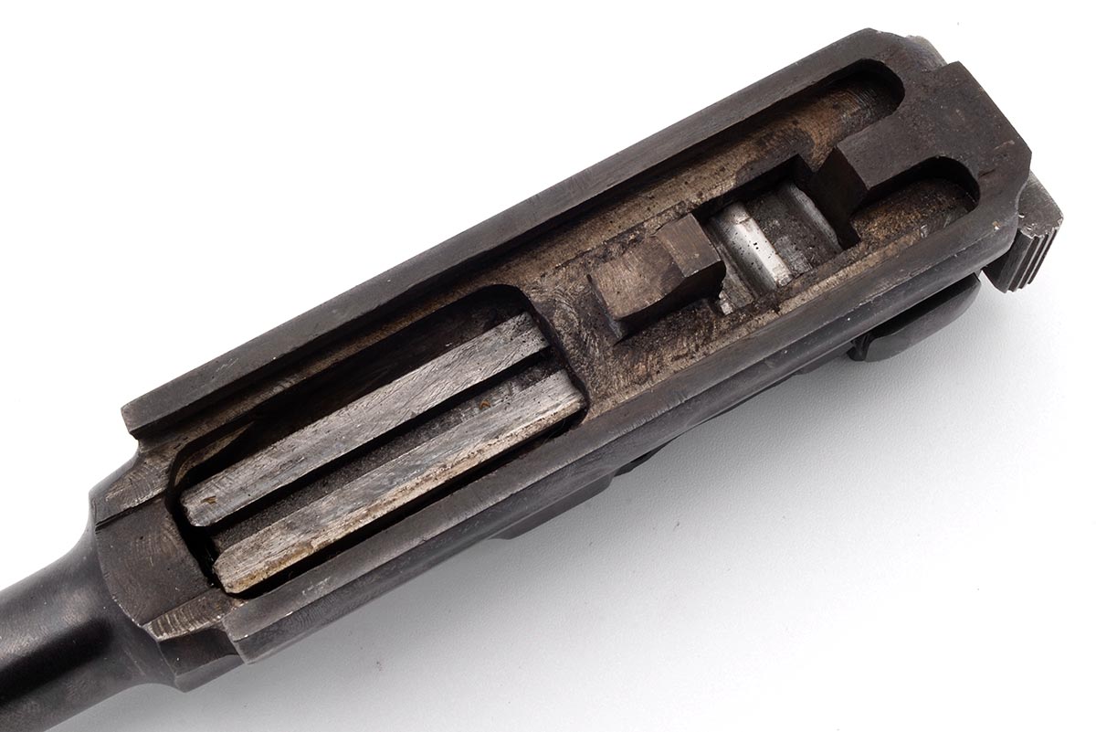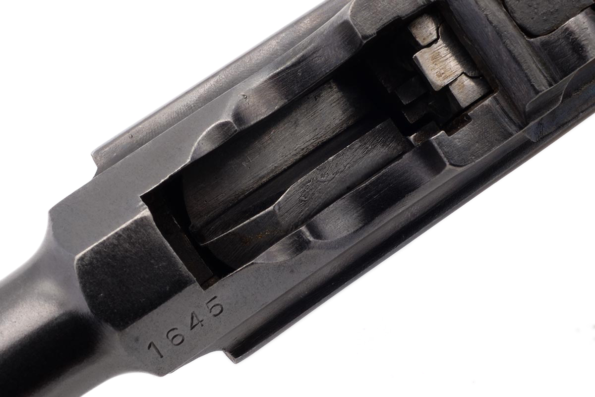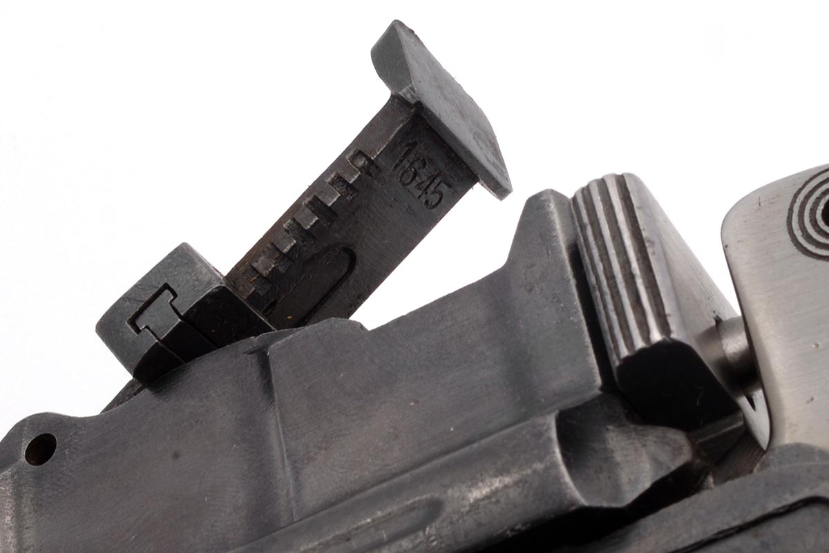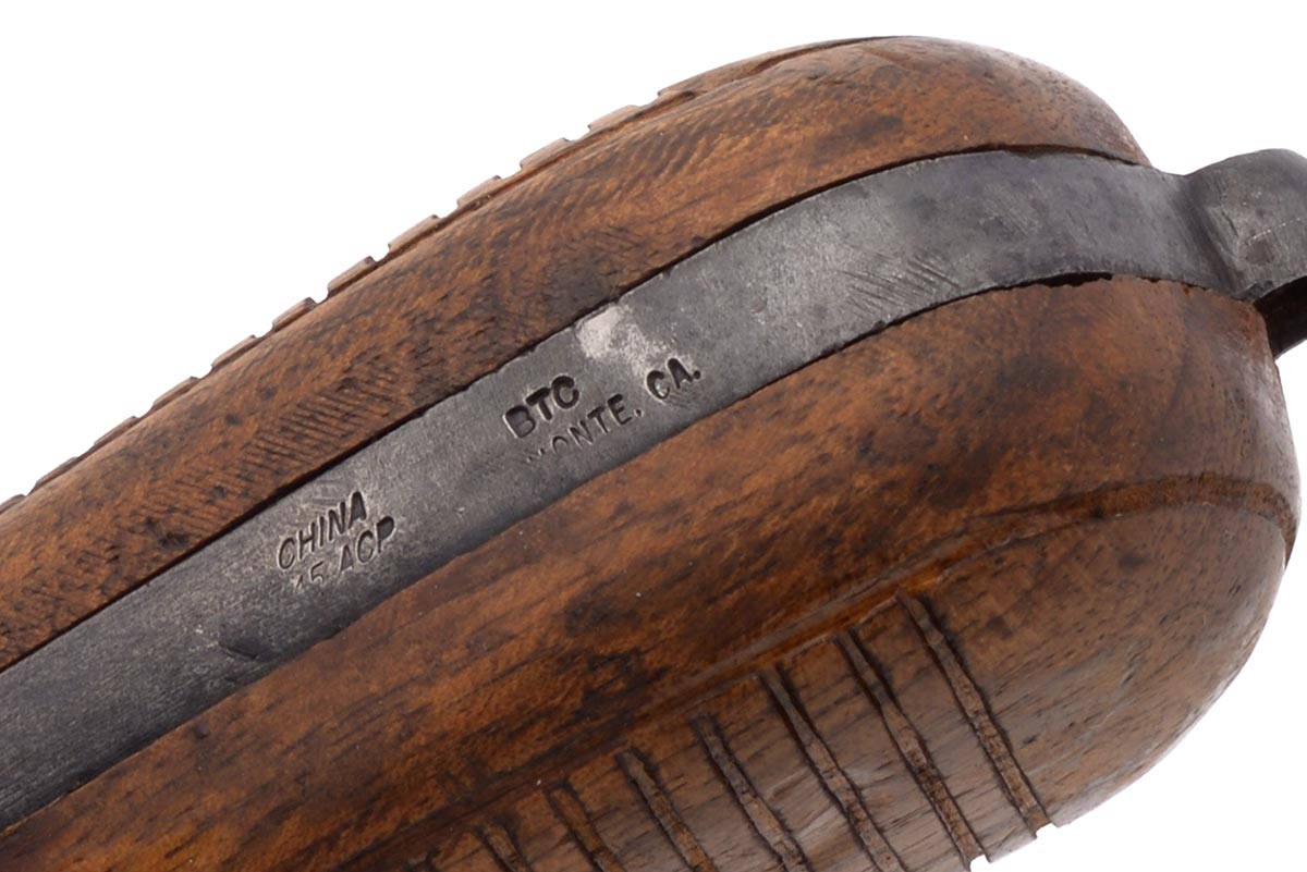 This is a modern Chinese reproduction Shansei/Shanxi Arsenal Type 17 Broomhandle pistol chambered in 45 ACP. It features a 5.5-inch barrel, blued finish, wood grips, and 10-round top-fed internal magazine. These pistols are extremely precise reproductions of the original Shanxi Type 17 and only minor details distinguish the differences between them. These pistols were manufactured and imported during the 1980s. The front of the grip is marked “CHINA 45ACP” and “BTC MONTE”. Despite being a replica, this pistol is still very rare and also sought-after by collectors. This gun is in very good condition with a bright shiny bore and strong rifling. There is very little wear to the bluing and it features all matching numbers. This rare reproduction would make a great addition to any firearms collection. Buy online today!