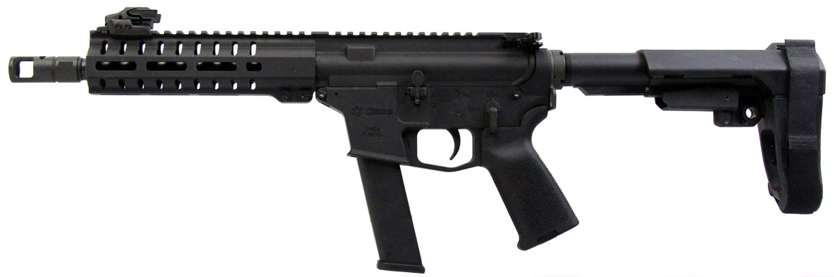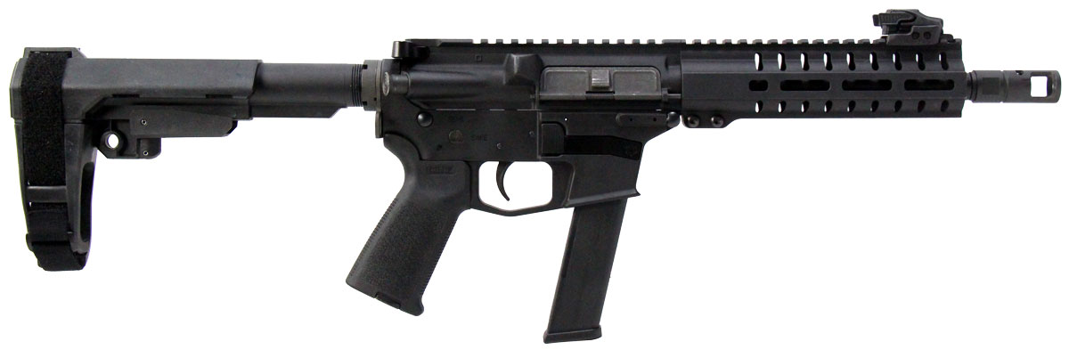 This is a used CMMG Banshee MkGs pistol chambered in 40 Smith & Wesson. It features an 8-inch barrel, 22-round Glock magazine, M-LOK handguard, muzzle brake, SBA3 pistol brace, and Crimson Trace red laser sight. Overall, this pistol is in good condition with some handling wear on the receiver. This would be a good choice for home defense. Buy online today!