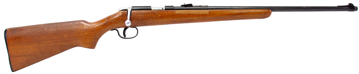 This is a used Colt Colteer rifle chambered in 22 Magnum. It features a 22-inch barrel, single shot bolt action, open sights, grooved receiver rail, blued finish, and wood stock. Overall, this Colt is in good condition with some handling wear on the stock and barrel. The stock has a previous owner's name carved into it. Bore condition is good with crisp rifling. This would be a good choice for small game hunting or target shooting. Buy online today!