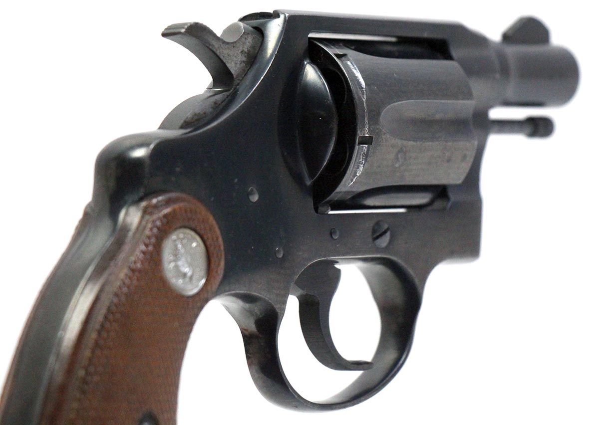 This is a vintage Colt Detective Special 2nd Issue revolver chambered in 38 Special. It features a 2-inch barrel, 6-round cylinder, fixed sights, wood grips, and blued finish. Overall, this Colt is in good condition with normal use cylinder draglines and handling wear on the frame. Based on Colt's serial lookup, this revolver was manufactured in 1969. This would be a good choice for concealed carry. Buy online today!