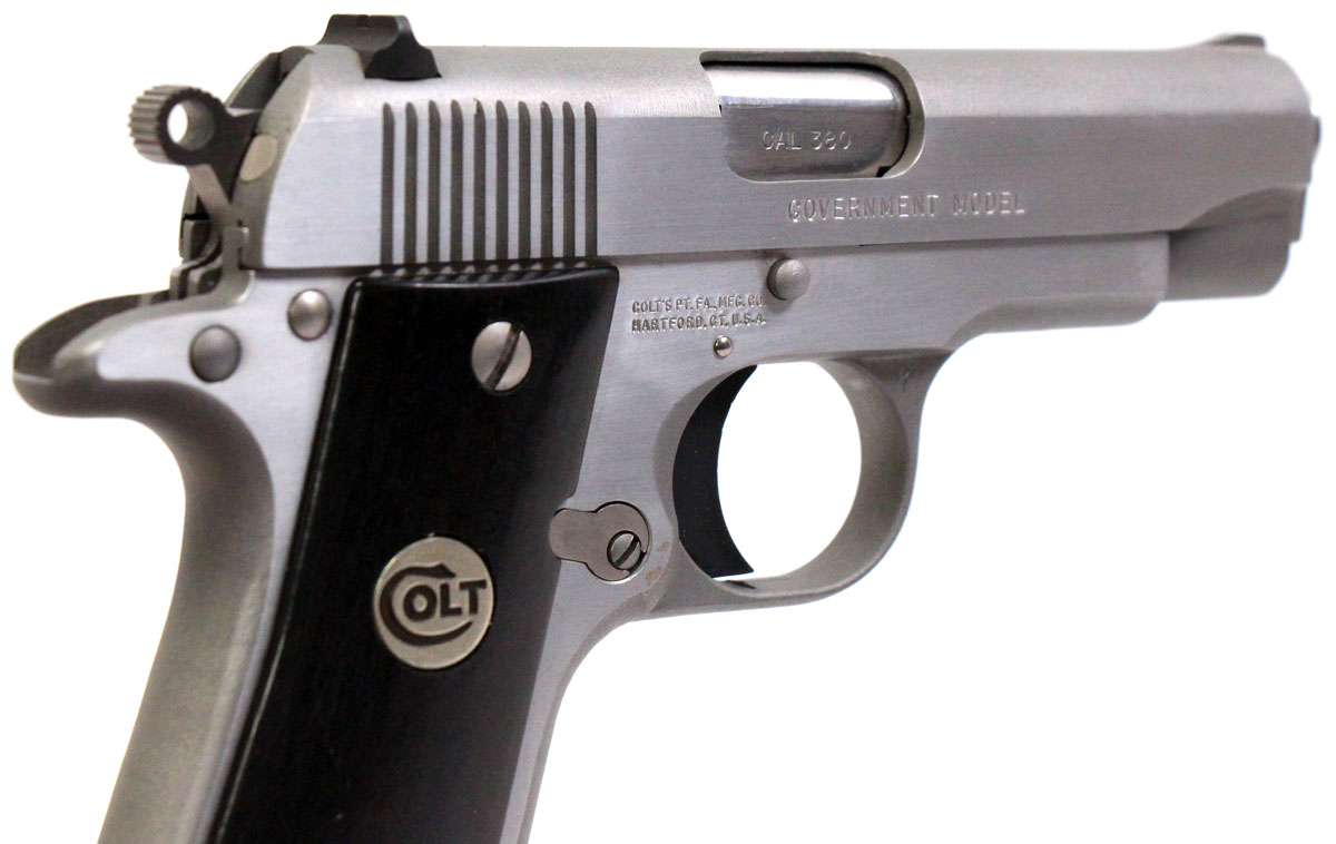 This is a used Colt Government Model pistol chambered in 380 ACP. It features a 3.25-inch barrel, 7-round magazine, fixed sights, thumb safety, wood grips with Colt medallions, and stainless finish. Includes factory box, display case, hang tag, and manual. Overall, this Colt is in good condition with normal wear on the barrel, slide, and frame. Based on Colt's serial database, this pistol was manufactured in 1989. This would be a good choice for concealed carry or collecting. Buy online today!