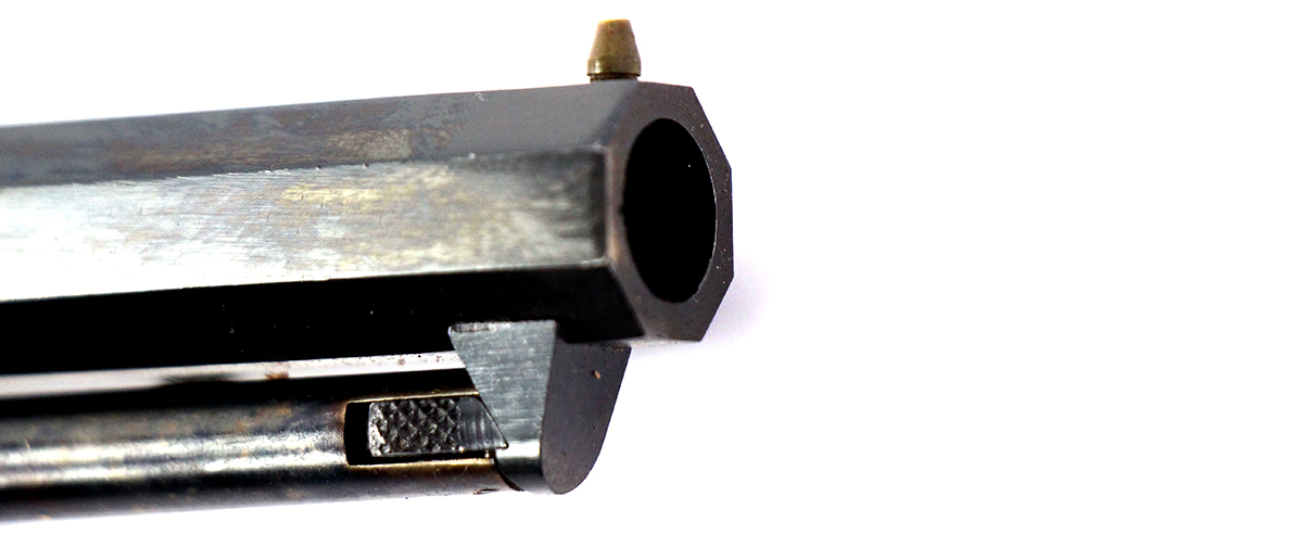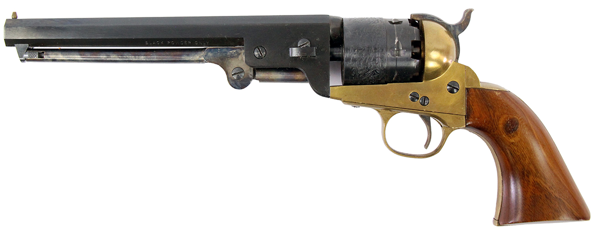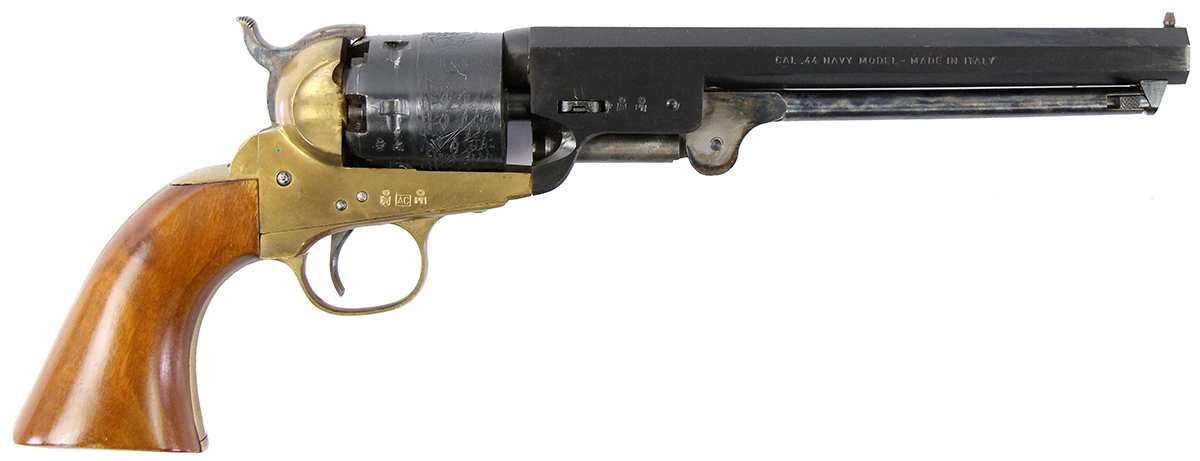 This is a used C.O.M. 1851 Navy revolver chambered for 44 caliber black powder projectiles. It features a 7.5-inch octagonal barrel, 6-round cylinder, percussion ignition system, and wood grips. Overall, this Uberti is in good condition with normal cylinder draglines. Bore condition is poor with worn rifling. This would be a good choice for recreational target shooting. Buy online today!