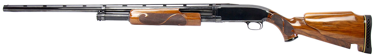 This is a used Custom Winchester Model 12 shotgun chambered in 12 gauge. It features a 30-inch vent rib barrel, 14.75-inch length of pull, 2.75-inch length of pull, fixed full choke, cross-bolt safety, blued finish, and custom recoil-reducing stock. Overall, this Winchester is in good condition with normal wear on the barrel and magazine tube. Based on serial range, this Winchester was manufactured in 1961. The barrel and receiver have matching serial numbers. This would be a good choice for trap shooting. Buy online today!