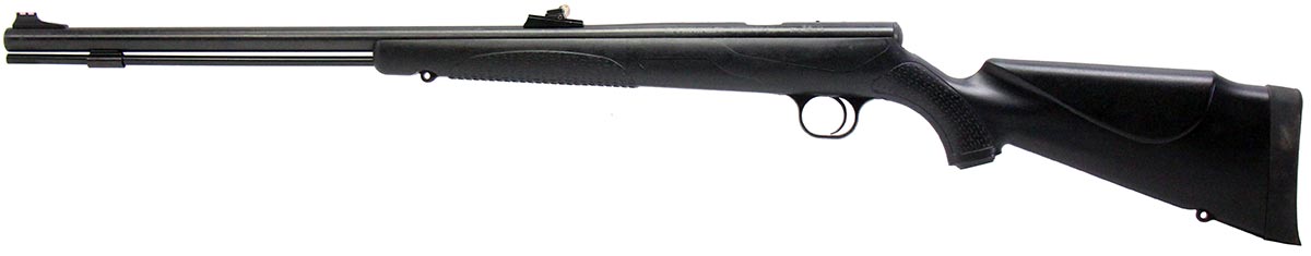 This is a used CVA Buckhorn muzzleloader chambered for 50 caliber projectiles. It features a 24-inch barrel, inline 209 primer ignition system, fiber optic sights, factory drilled and tapped receiver, and polymer stock. Overall, this muzzleloader is in good condition with some handling wear on the stock and barrel. Bore condition is fair with corrosion at the muzzle. This would be a good choice for hunting. Buy online today!