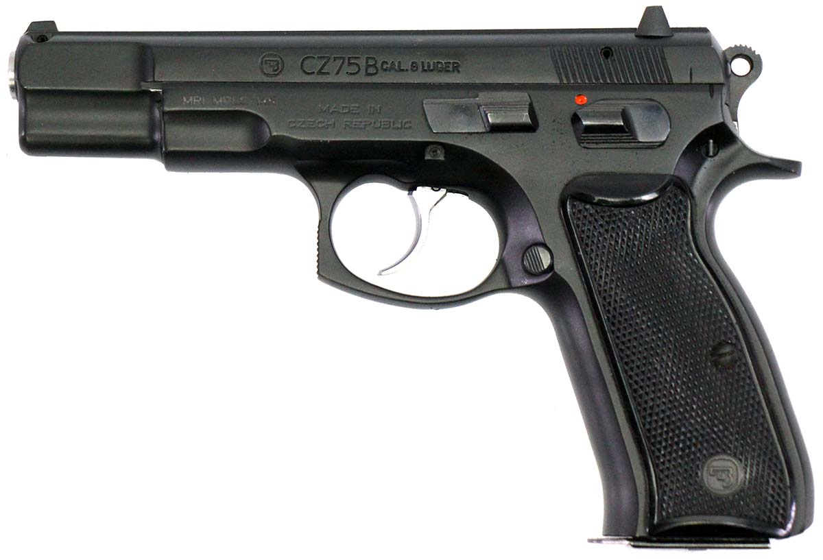 This is a used CZ 75B pistol chambered in 9mm. It features a 4.6-inch barrel, 16-round magazine, fixed sights, and thumb safety. Overall, this CZ is in good condition with normal use wear on the slide and barrel. This would be a good choice for target shooting. Buy online today!