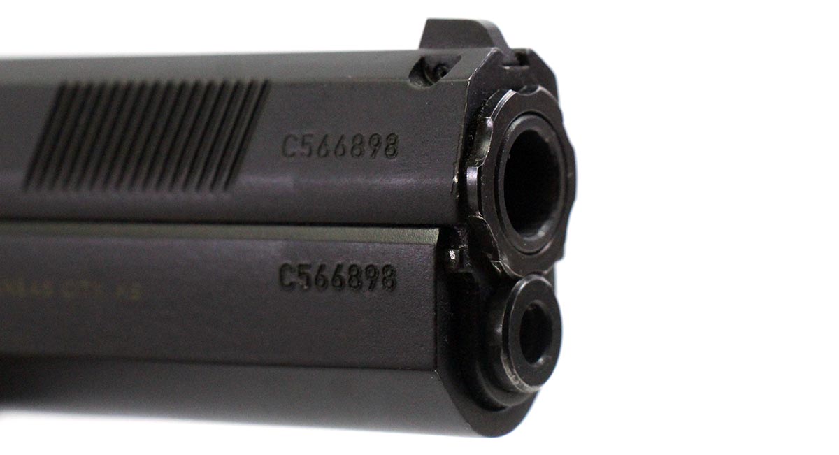 This is a used CZ 97BD pistol chambered in 45 ACP. It features a 4.5-inch barrel, 10-round magazines, night sights, and decocker. Includes factory box, instruction manual, cleaning brush, and two magazines. Overall, this CZ is in good condition with normal wear on the slide and barrel. This would be a good choice for home defense. Buy online today!