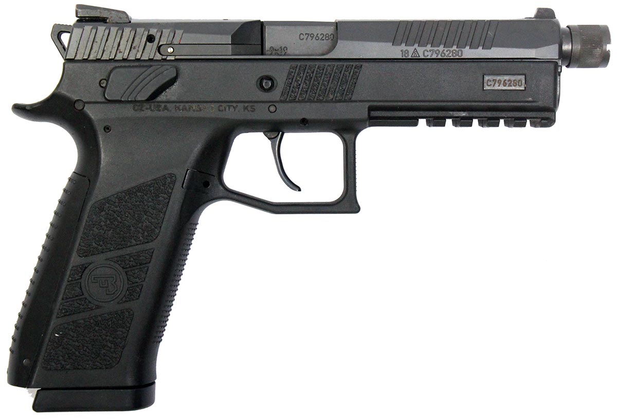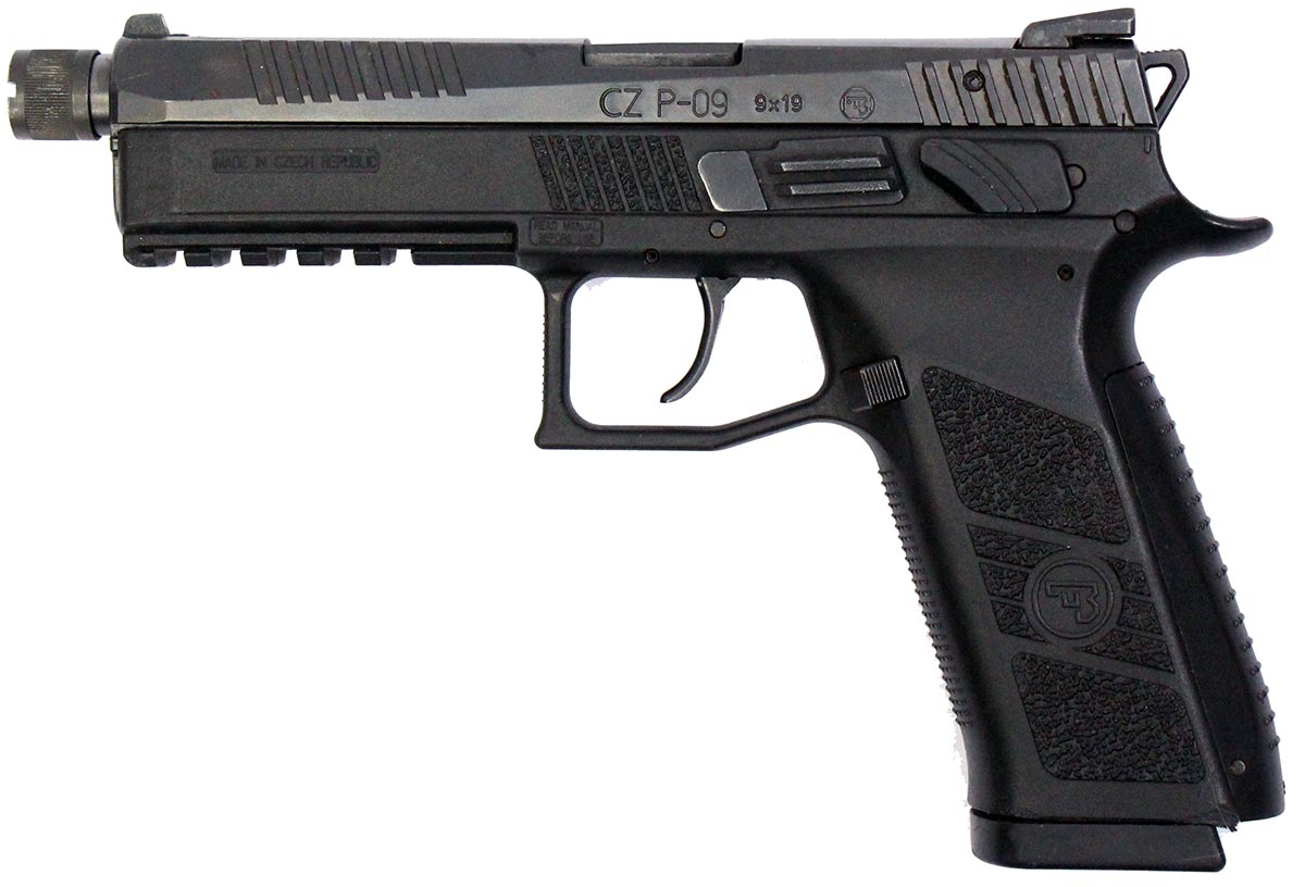 This is a used CZ P-09 pistol chambered in 9mm. It features a 5-inch threaded barrel, 19-round magazines, fixed sights, ambidextrous decocker, and accessory rail. Overall, this CZ is in good condition with normal wear on the slide and barrel. This would be a good choice for home defense. Buy online today!