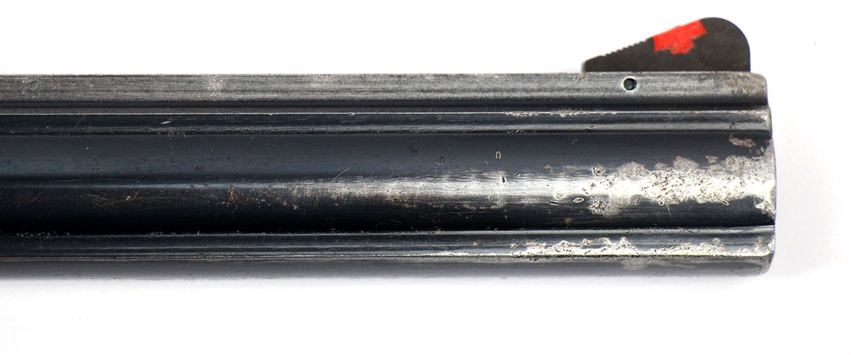 This is a used Dan Wesson 15 revolver chambered in 357 Magnum. It features an 8-inch barrel, 6-round cylinder, adjustable rear sight, blued finish, and wood grips. Overall, this Dan Wesson is in good mechanical condition with significant finish wear throughout the barrel and cylinder. This would be a good choice for target shooting. Buy online today!