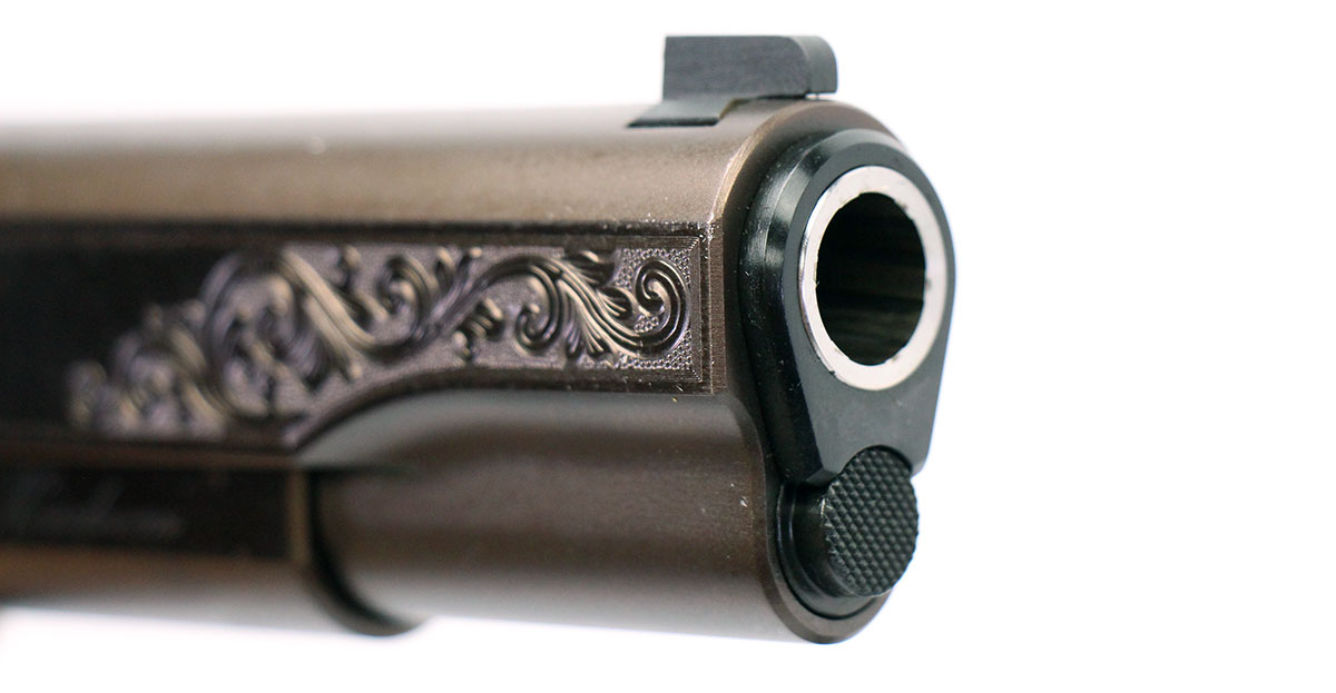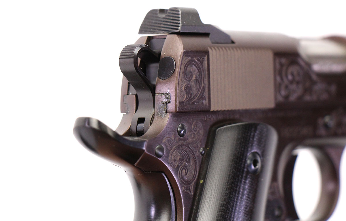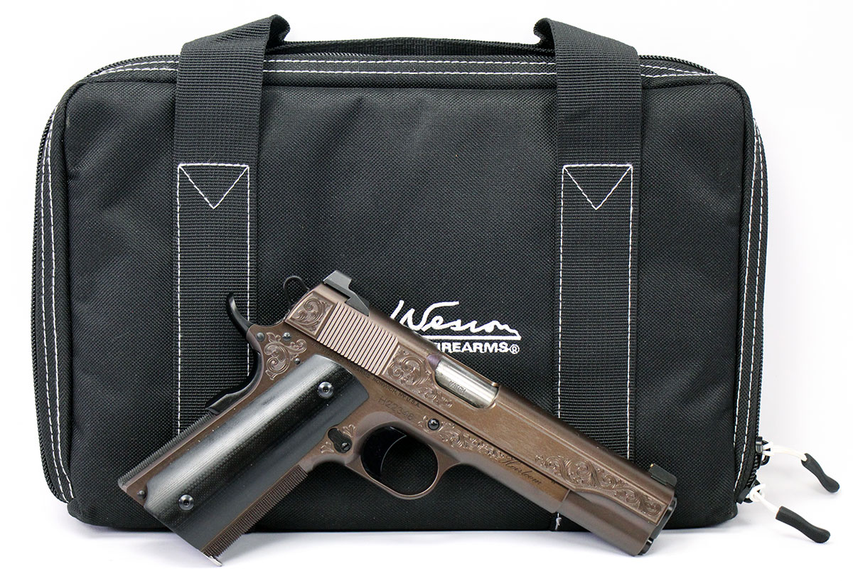 This is a used Dan Wesson 1911 Heirloom 2022 Bronze 1911 pistol chambered in 45 ACP. It features a 5-inch barrel, 7-round magazine, thumb safety, grip safety, brass bead front sight, G10 grips, bronze PVD finish, and factory engravings. Includes nylon carrying case, instruction manual, and two magazines. Overall, this Dan Wesson is in good condition with normal use wear on the slide and barrel. This would be a good choice for collecting. Buy online today!