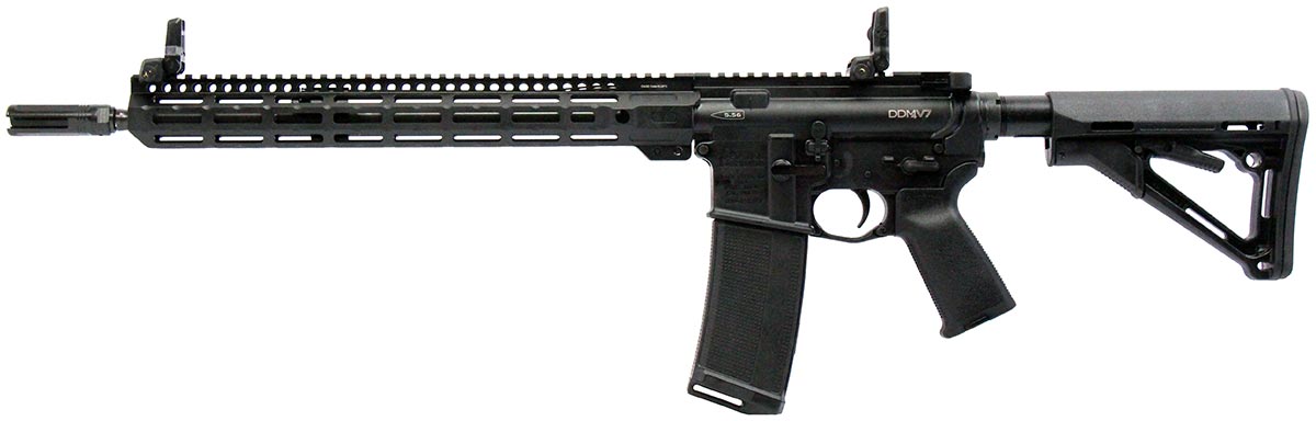 This is a used Daniel Defense DDM4V7 carbine chambered in 5.56 NATO. It features a 16-inch barrel with a 1/7 twist, 32-round magazine, Surefire flash hider, M-LOK handguard, mid-length gas system, Magpul CTR stock, Magpul MBUS sights, and ambidextrous safety selector. Overall, this carbine is in good condition with normal se wear on the receiver. Bore condition is good with crisp rifling. This would be a good choice for home defense. Buy online today!