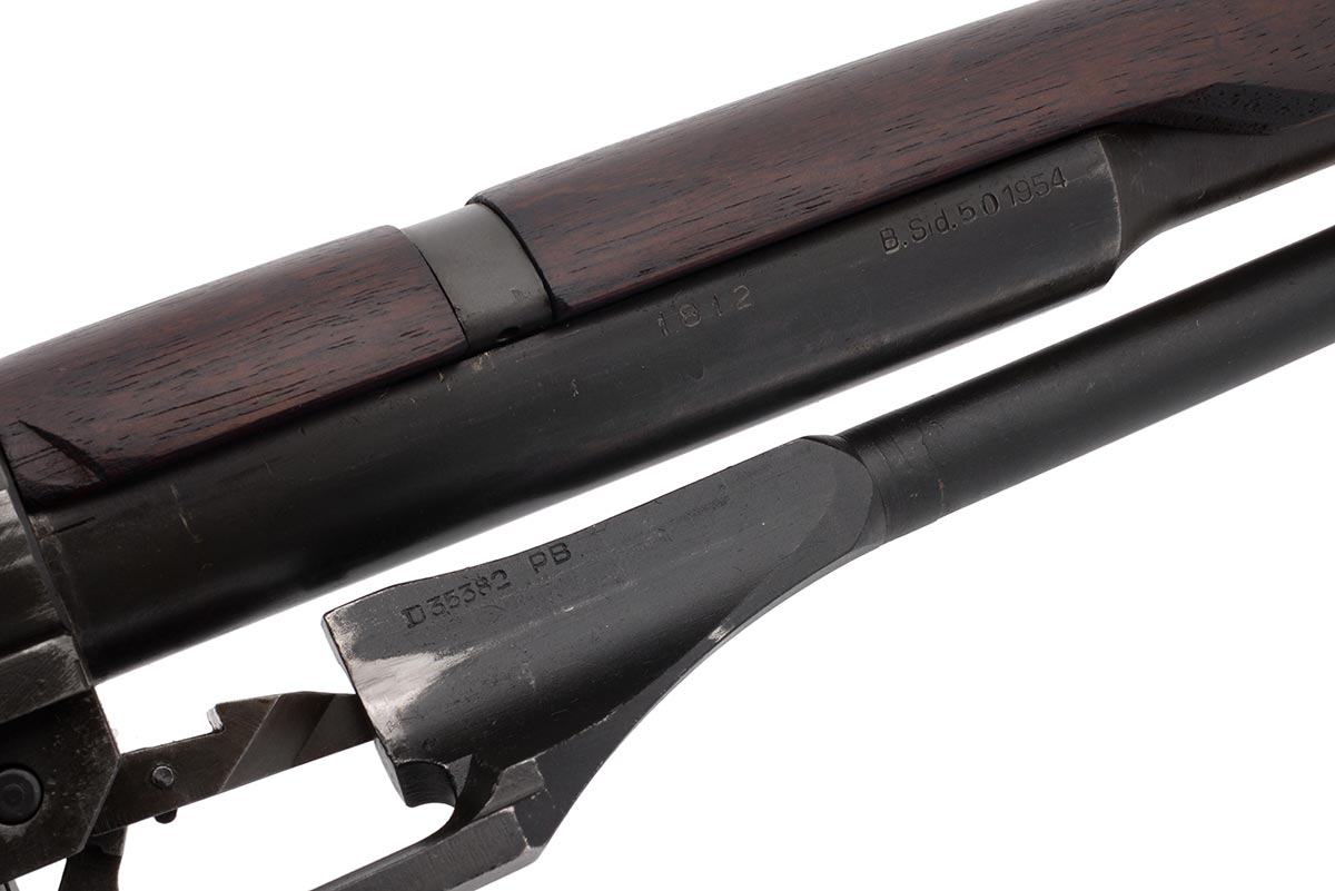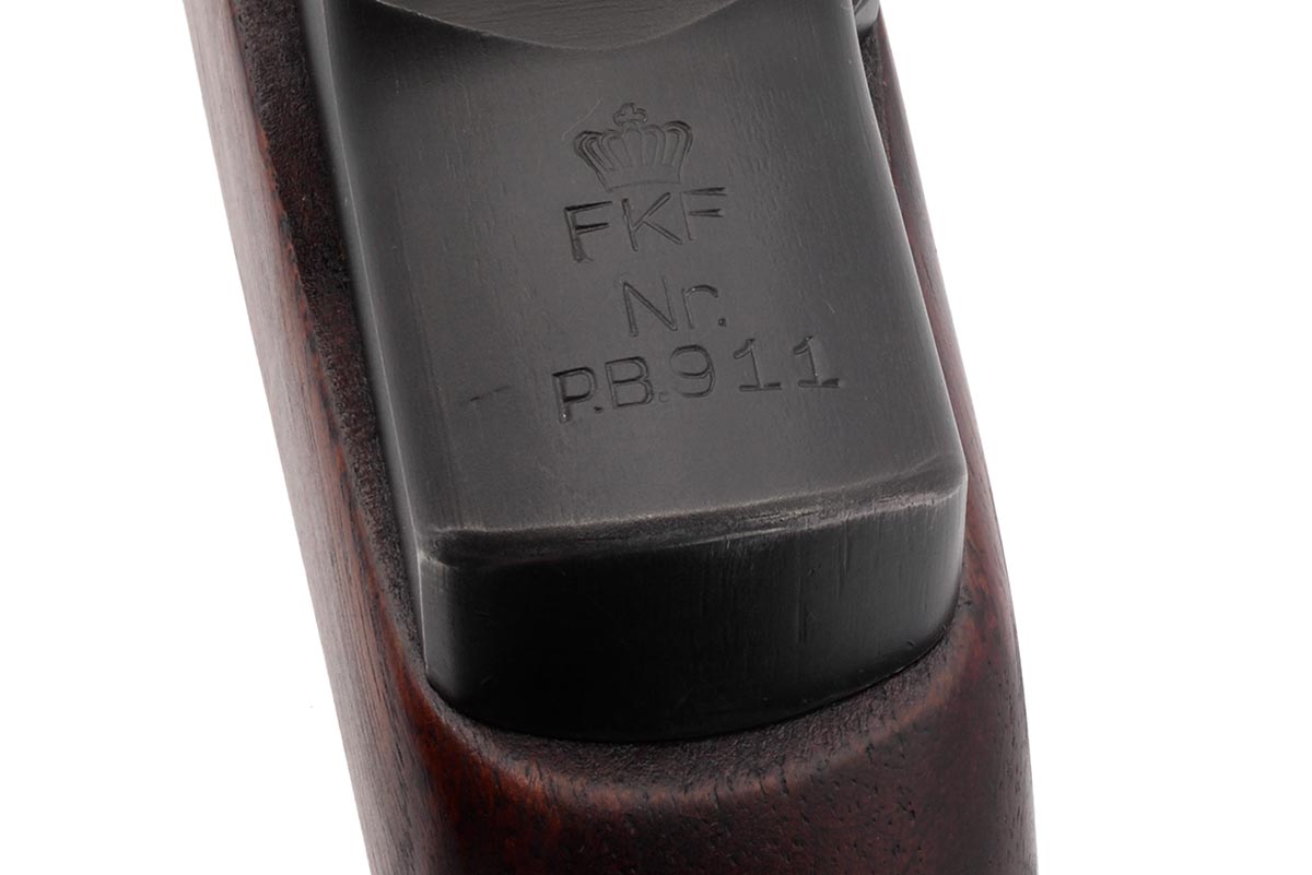 This is a Danish FKF Gevaer M50 Italian Beretta M1 Garand rifle chambered in 30-06. It features a 24-inch barrel, parkerized finish, and uses standard M1 Garand 8-round en-bloc clips. The back of the receiver is marked with a Danish crown over "FKF" (Forsvarets Krigsmateriel Forvaltning) which translates to "Danish Defence War Material Administration". Under the Danish marking is "P.B.911" which means this rifle was manufactured by Pietri Beretta. All marked parts except for the barrel are marked "PB". The barrel is marked B.Sid.50 1955" which indicates it was made by Breda for Beretta in 1955. The stock is serial numbered to the rifle on the bottom of the butt. Overall condition of this Garand is good with a bright shiny bore and strong rifling. There is very little wear to the metal finish and the wood is in very nice shape. This would make a great addition to a European military rifle collection. Buy online today!