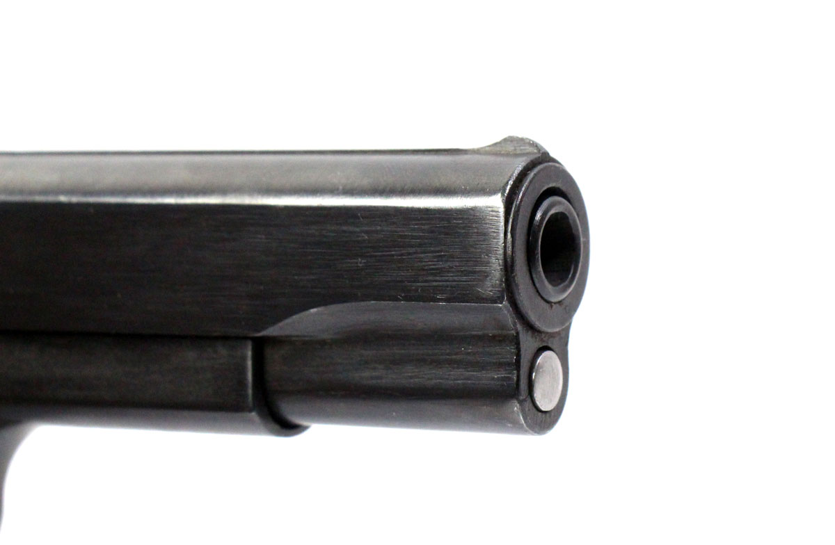 This is a WW2 F.B. Radom VIS 35 pistol chambered in 9mm. It features a 4.7-inch barrel, 8-round magazine, grip safety, decocker, fixed sights, lanyard ring, and synthetic grips. Overall, this Radom is in good condition with normal use wear on the slide and barrel. The slide and frame are marked with Nazi Waffenampt 77 inspection stamps. The barrel's serial number has been force matched and Century Arms import marks are located on the trigger guard. This would be a good choice for military surplus collectors. Buy online today!