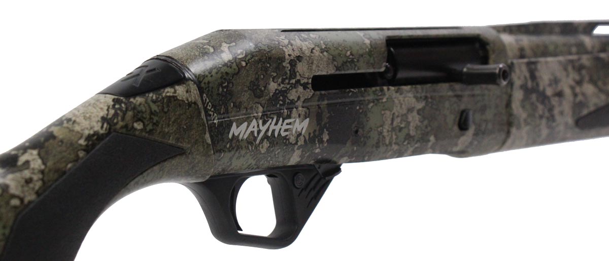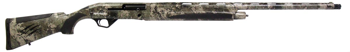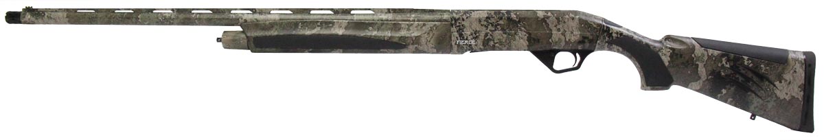 This is a used Fierce Firearms Mayhem FX shotgun chambered in 12 gauge. It features a 28-inch vent rib barrel, 3.5-inch chamber, 14.25-inch length of pull, screw-in full choke, fiber optic front sight, cross-bolt safety, and camo finish. Overall, this shotgun is in good condition with some handling wear on the stock. This would be a good choice for hunting waterfowl. Buy online today!
