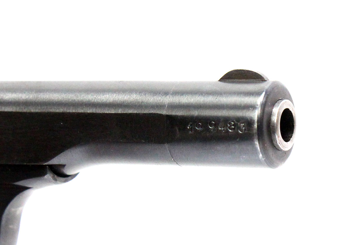This is a WW2-era FN 1922 pistol chambered in 32 ACP. It features a 4.49-inch barrel, 9-round magazine, thumb safety, grip safety, fixed sights, checkered wood grips, and blued finish. Overall, this FN is in good condition with normal wear on the barrel, slide, and frame. With the exception of the magazine, all serial numbers match and there are no import marks. German eagles and Waffenampts are present on the left side of the slide, barrel, and frame. This would be a good choice for collecting. Buy online today!