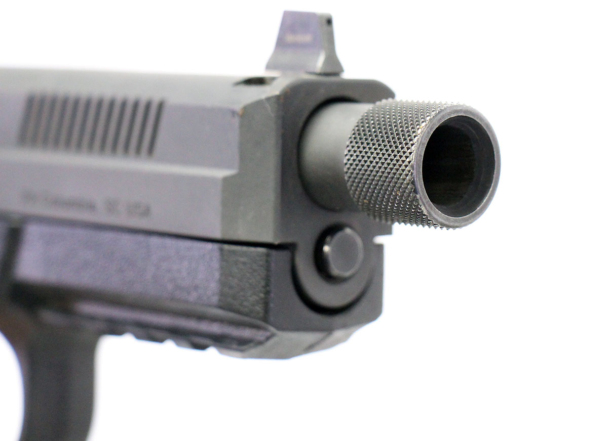 This is a used FN FNX Tactical pistol chambered in 45 ACP. It features a 5.25-inch threaded barrel, 15-round magazine, ambidextrous safety, decocker, accessory rail, suppressor-height night sights, and a Vortex Venom red dot sight. Includes factory case, instruction manual, and two magazines. Overall, this FN is in good condition with normal wear on the barrel and slide. This would be a good choice for home defense. Buy online today!