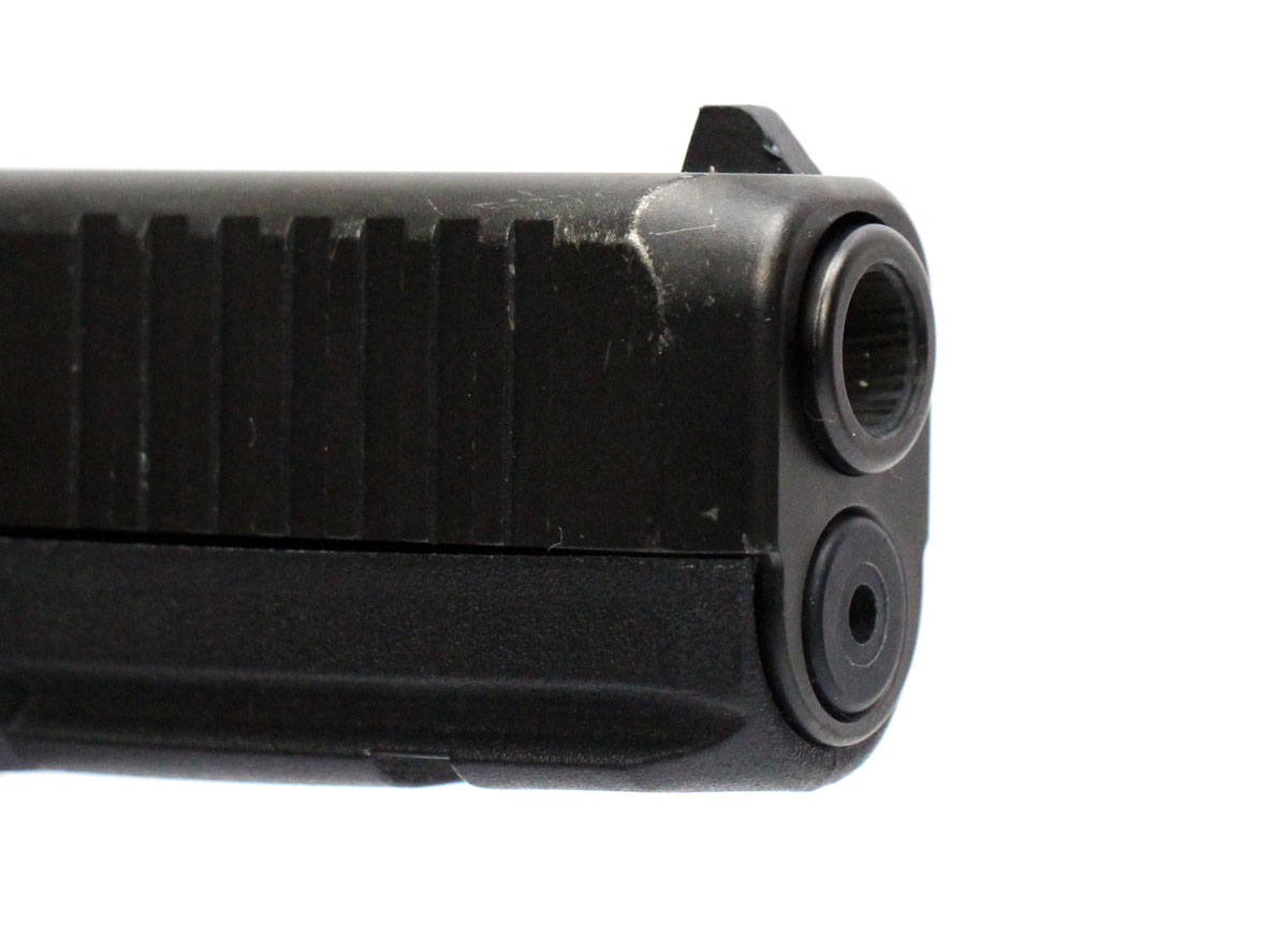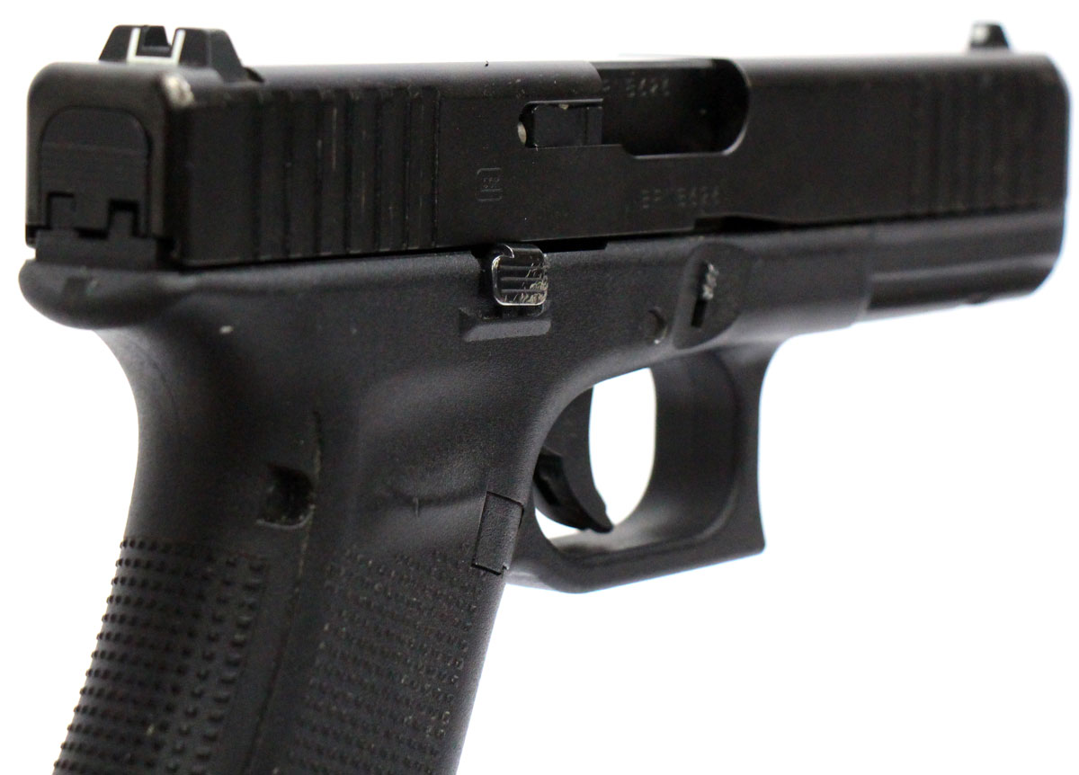 This is a used Glock 17 Gen5 pistol chambered in 9mm. It features a 4.49-inch barrel, 17-round magazines, factory contrast sights, and accessory rail. Includes factory box, manual, three 17-round magazines, backstrap set, and magazine loading tool. Overall, this Glock is in good condition with some wear on the slide and barrel. This would be a good choice for home defense. Buy online today!