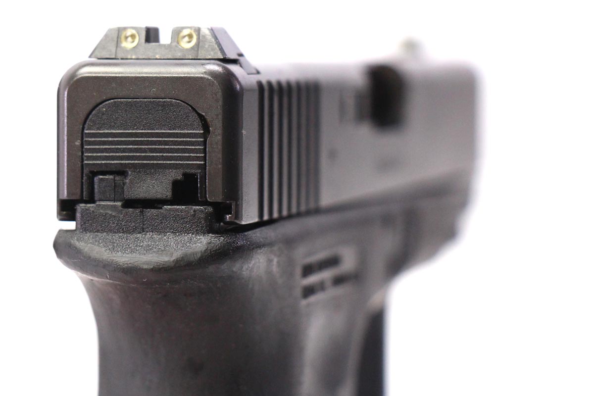This is a used Glock 19 Gen3 pistol chambered in 9mm. It features a 4.02-inch barrel, 15-round magazines, night sights, undercut trigger guard, and accessory rail. Includes factory box, three magazines, magazine loading tool, and manual. Overall, this Glock is in good condition with normal wear on the slide and barrel. This would be a good choice for home defense or concealed carry. Buy online today!