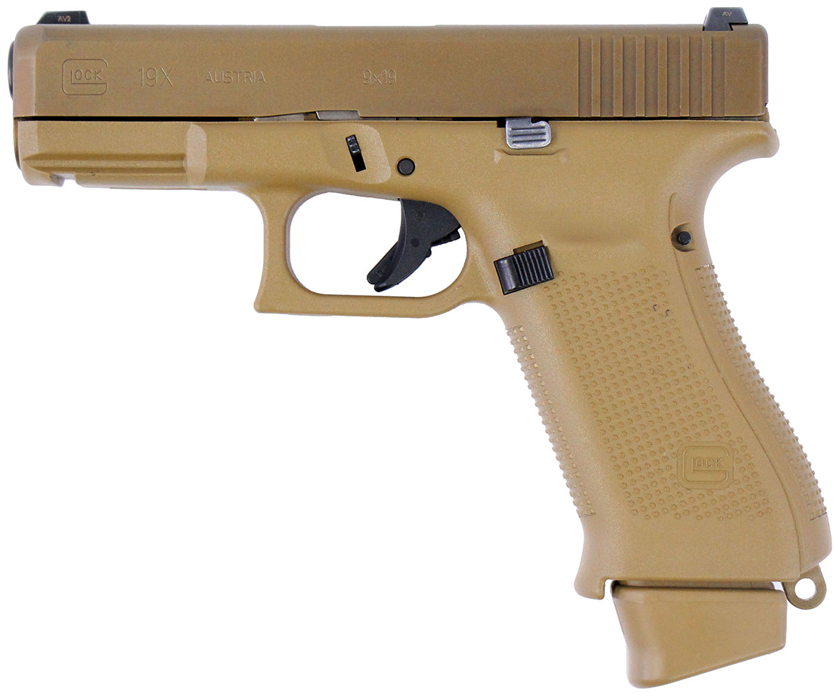 This is a used Glock 19X pistol chambered in 9mm. It features a 4.02-inch barrel, 19-round magazine, night sights, accessory rail, and flat dark earth finish. Overall, this Glock is in good condition with normal use wear on the slide and barrel. This would be a good choice for home defense. Buy online today!