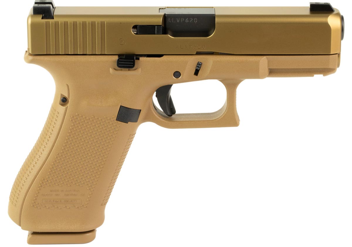 This gun is restricted for sale to Law Enforcement, First Responders and Military ONLY and you will be required to complete a form and send us a copy of your credentials prior to shipment to your dealer or picking up in our store. Please note that it is illegal to misrepresent yourself as a qualified individual to purchase this gun, and we may charge a $25.00 penalty for each occurrence as this is clearly stated that this is for qualified individuals only. Practical everyday hybrid pistol developed for the military. Ideal for all conditions & all situations. Full-size frame with rail, Coyote Tan. Compact slide, factory-colored Coyote Tan. nPVD slide coating prevents corrosion, resists chemicals, & stands up against the elements. GLOCK Marksman Barrel (GMB) with enhanced polygonal rifling & improved barrel crown for increased accuracy. Ambidextrous slide stop levers. No finger grooves. Factory night sights. Lanyard loop for retention. Includes (1) coyote colored pistol case, (1) 17-round mag and (2) 19-round extended mags.