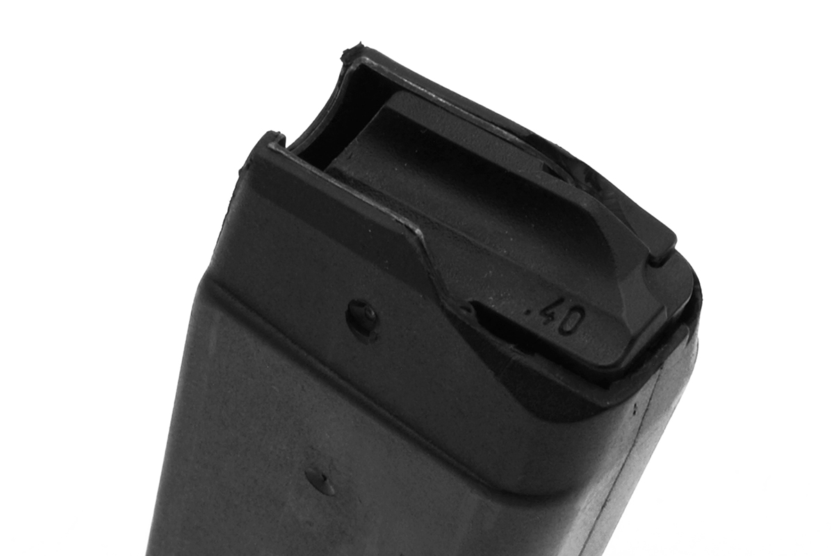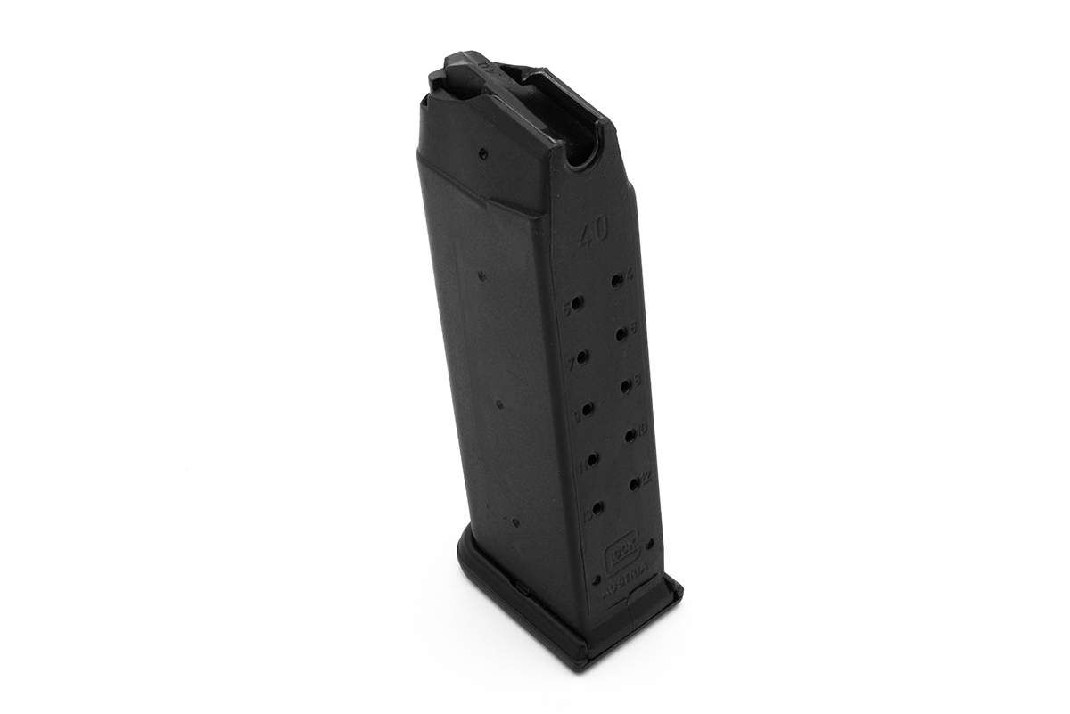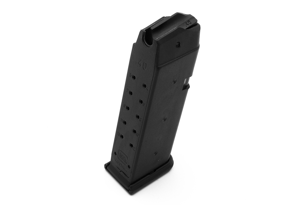 This is a Glock 23 pre-ban magazine. It features a 13 round capacity of 9mm ammo, "u-notch" and low placement ".40" marking. It was manufactured before the assault weapons ban went into effect, which required it to have a restricted marking below the caliber. Overall condition of this magazines is very good with only light marks from use. This magazine style would have been an early Gen 2 variation. Buy online today!