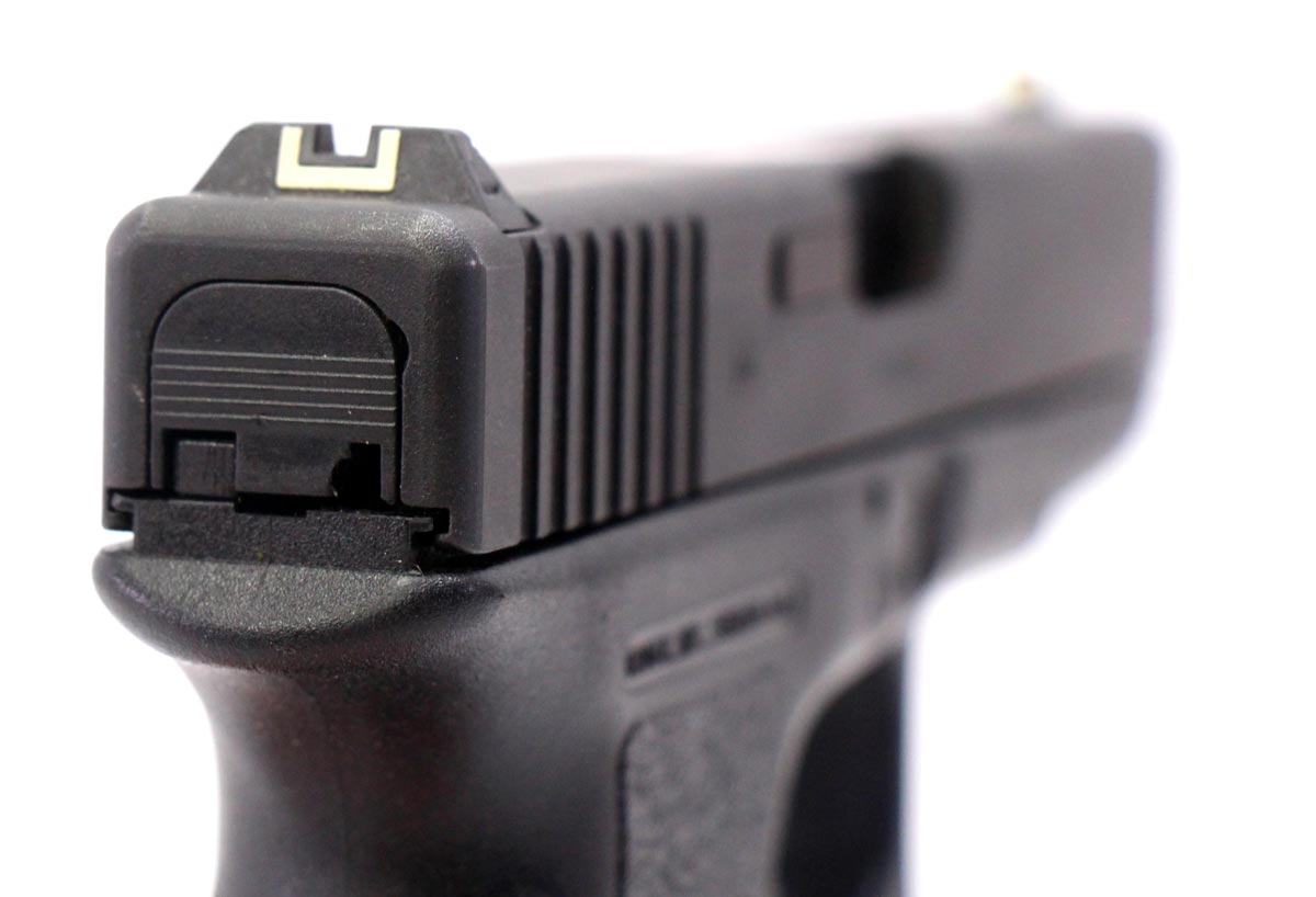 This is a used Glock 23 Gen2 pistol chambered in 40 Smith & Wesson. It features a 4.02-inch barrel, 13-round magazine, no finger grooves, and factory contrast sights. Overall, this Glock is in good condition with normal use wear on the slide, barrel, and frame. This would be a good choice for concealed carry. Buy online today!