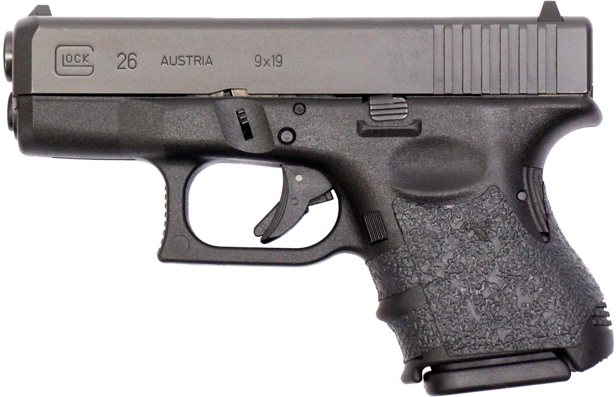 This is a used Glock 26 Gen3 pistol chambered in 9mm. It features a 3.46-inch barrel, 10-round magazines, grip tape, and factory contrast sights. Includes factory box, instruction manual, and two magazines. Overall, this Glock is in good condition with normal use wear on the barrel and slide. This would be a good choice for concealed carry. Buy online today!
