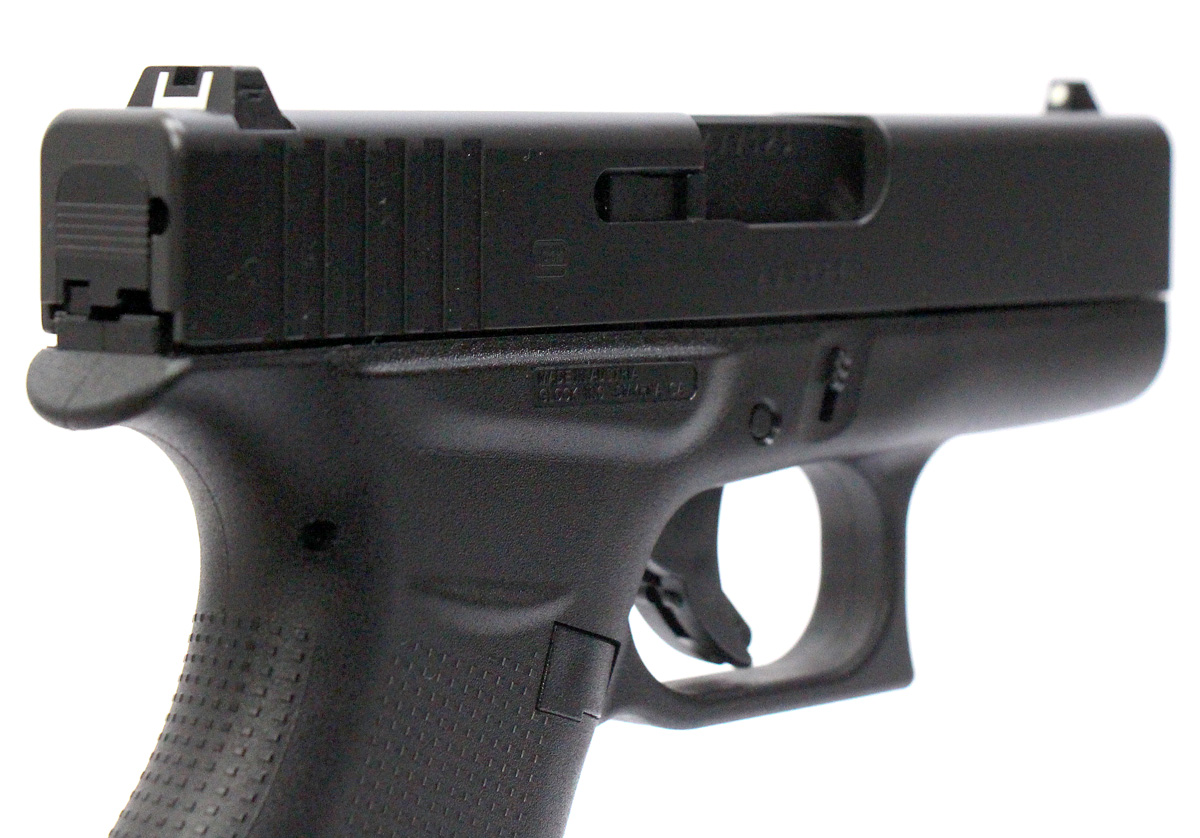 This is a used Glock 43 pistol chambered in 9mm. It features a 3.39-inch barrel with polygonal rifling, 6-round magazines, and factory contrast sights. Includes factory box, magazine loading tool, two magazines, and instruction manual. Overall, this Glock is in very good condition with minimal wear. This would be a great choice for concealed carry. Buy online today!