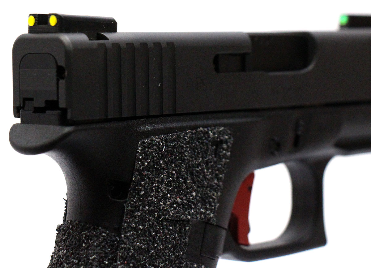 This is a used Glock 43X pistol chambered in 9mm. It features a 3.41-inch barrel, 10-round magazine, fiber optic sights, grip tape, Apex trigger, and front slide serrations. Overall, this Glock is in good condition with normal wear on the slide and barrel. This would be a good choice for concealed carry. Buy online today!