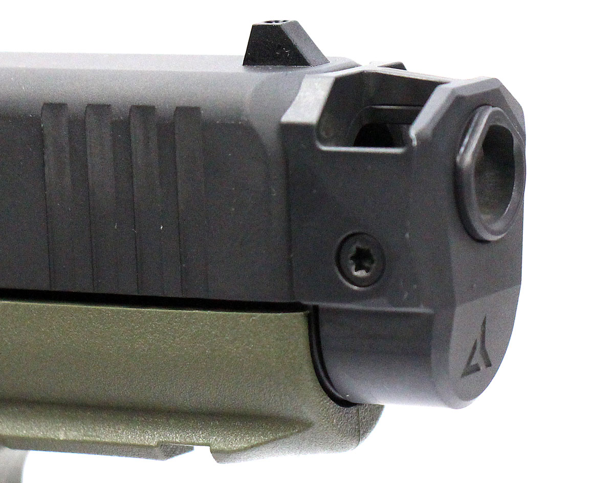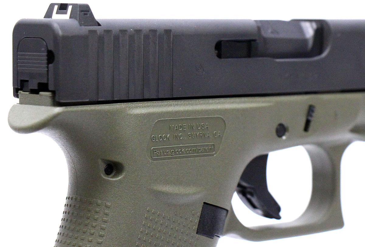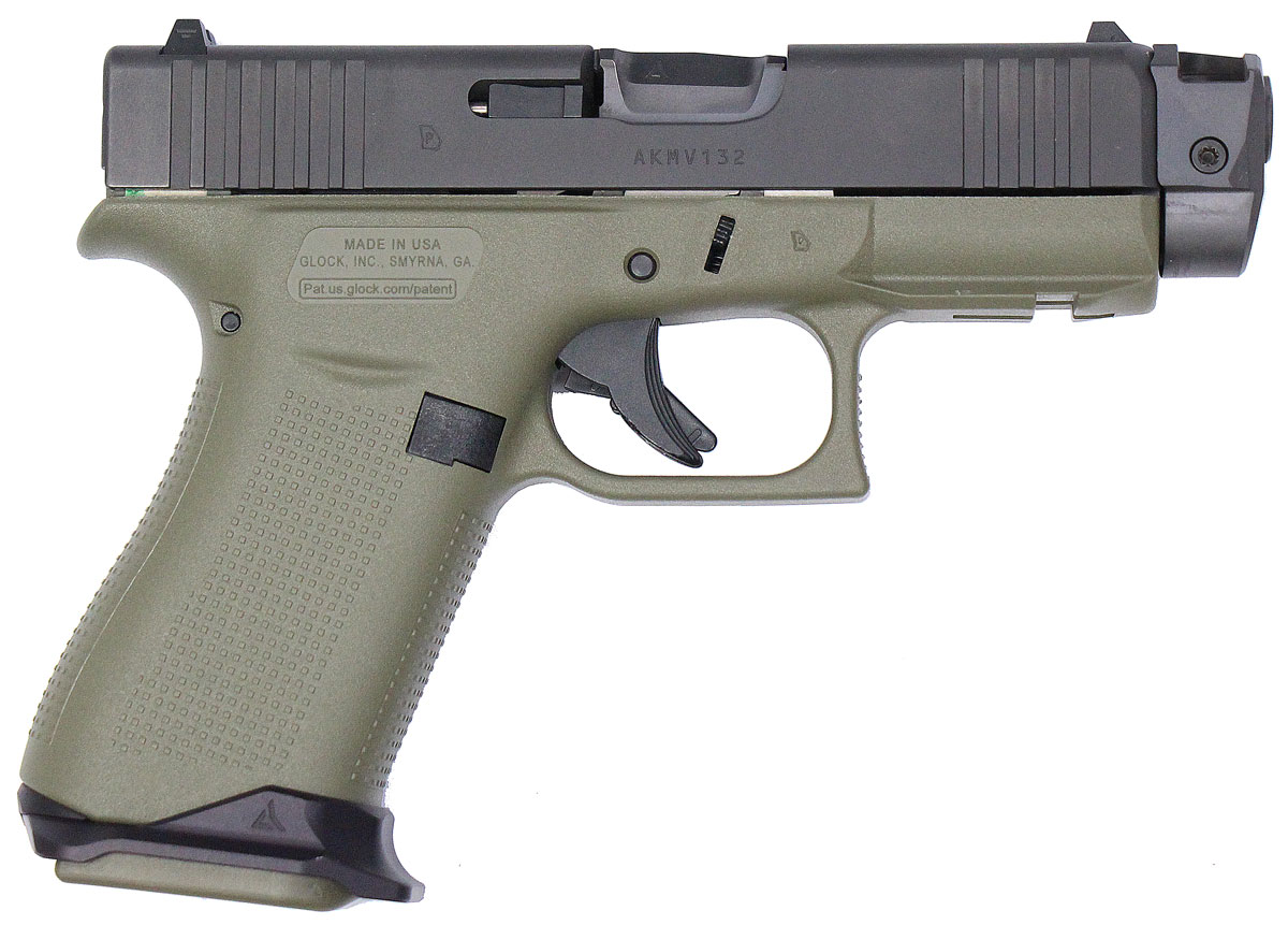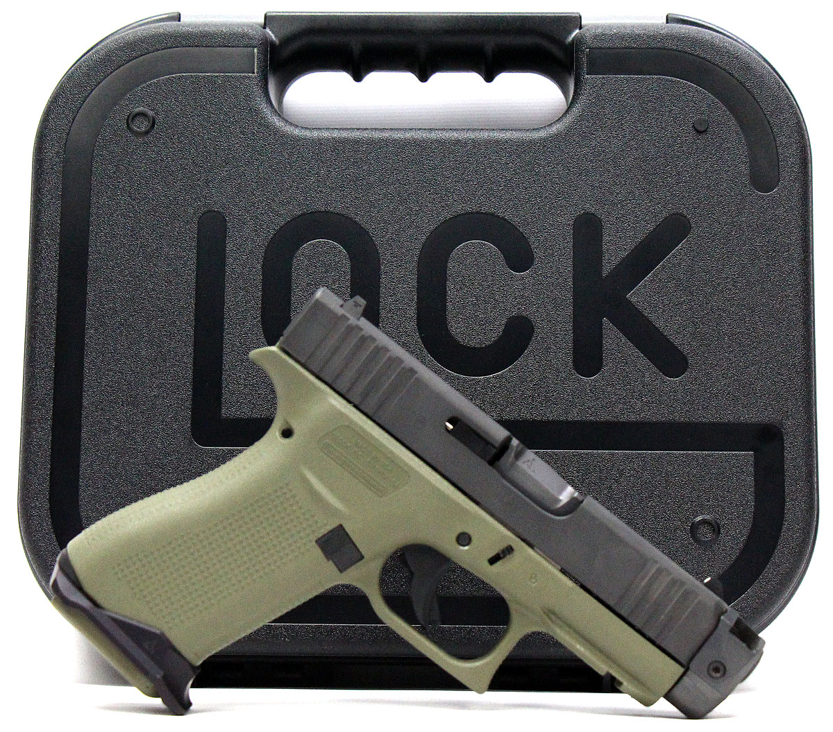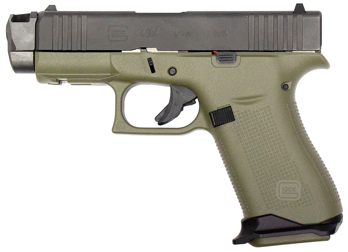 This is a used Glock 43X pistol chambered in 9mm. It features a 3.41-inch Radian Ramjet barrel with Radian Afterburner compensator, 10-round magazine, factory contrast sights, flared magwell, accessory rail, battlefield green frame, and front slide serrations. Includes factory box and manual. Overall, this Glock is in good condition with normal wear on the slide and barrel. This would be a good choice for concealed carry. Buy online today!