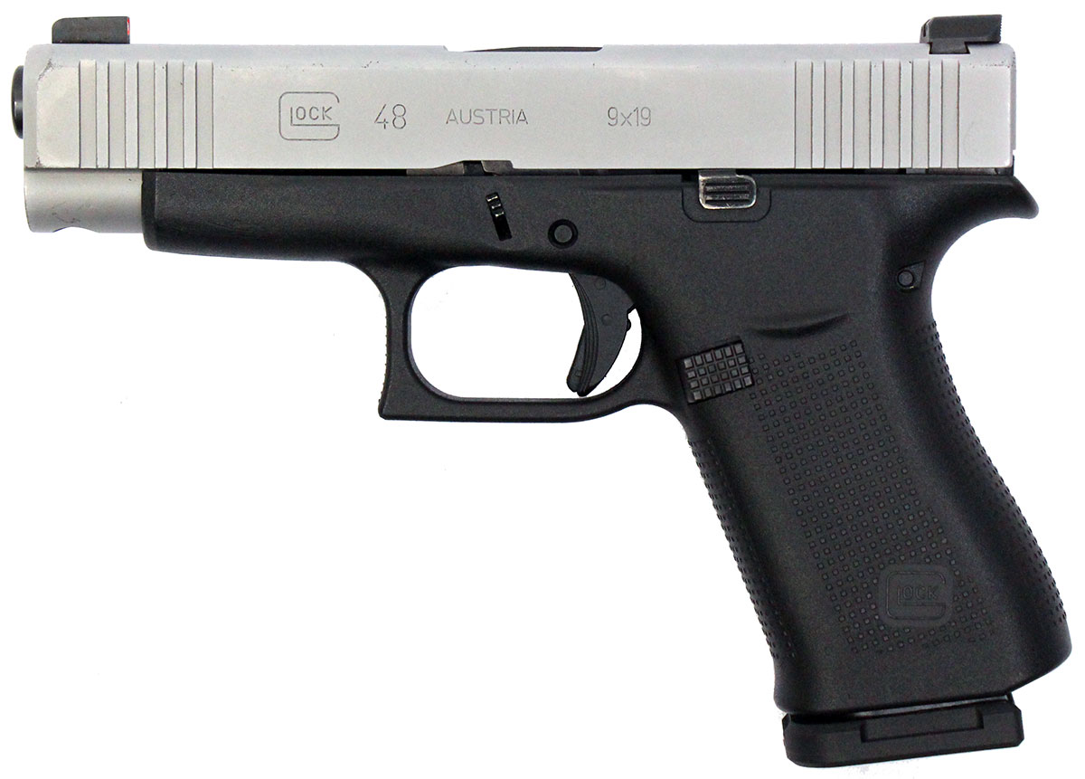 This is a used Glock 48 pistol chambered in 9mm. It features a 4.17-inch barrel, Shield Arms 15-round magazine, Shield Arms magazine release button, night sights, gray PVD finish, and front slide serrations. Overall, this Glock is in good condition with normal wear on the slide and barrel. This would be a good choice for concealed carry. Buy online today!