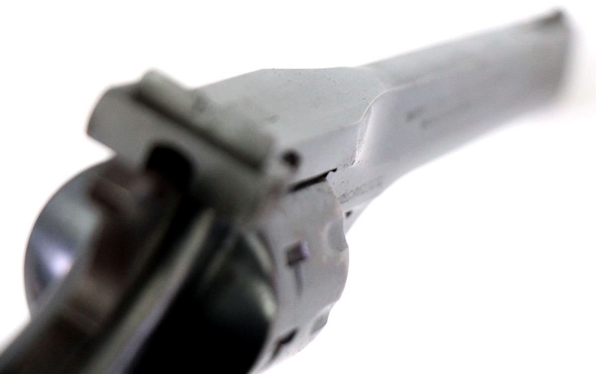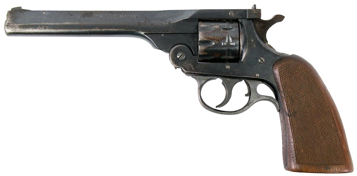 This is a used Harrington & Richardson Sportsman revolver chambered in 22 Long Rifle. It features a 6-inch barrel, 9-round top-break cylinder, fixed sights, blued finish, and checkered wood grips. Overall, this H&R is in good condition with significant freckling throughout the barrel, frame, and cylinder. This would be a good choice for target shooting. Buy online today!